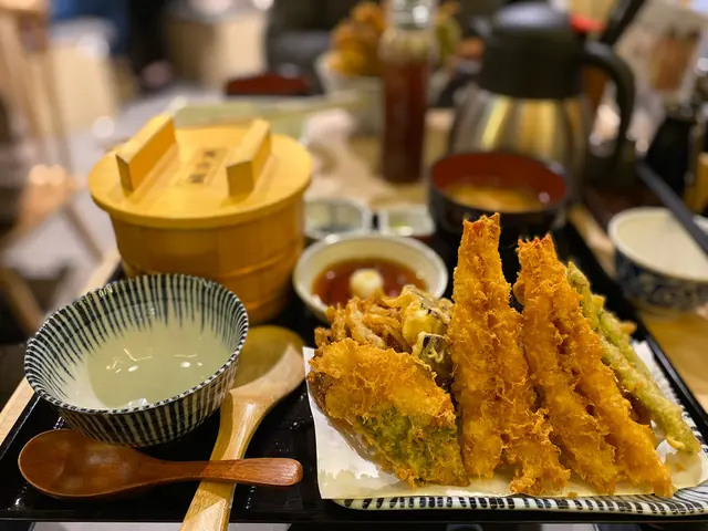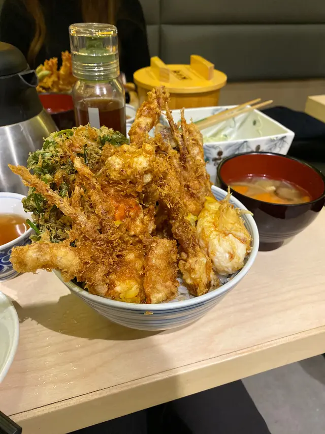 ※榮獲連續五年日本天丼金賞獎※睇到呢句就想試下佢係咪真係咁正!! 係朗豪坊11樓, 要排隊, 平日夜晚8點左右人龍都排到12樓, 都幾誇張, 不過佢限時60分鐘, 所以其實都唔係排好耐就可以入座啦!首先一開始黎個簡短描述就係「好味!! 一定會ENCORE!!」相信係同佢既用料有好大關係, 佢好多重要材料都係日本直送, 秘製天婦羅粉, 秘製天丼醬汁, 白飯係用北海道七星米, 仲有個秘製柚子胡椒沙律汁!點好餐又未上菜既時候就可以食下前菜, 全部都係無限供應!!! 有蘿蔔漬, 牛蒡漬(一般野), 但佢個茶係牛蒡茶!! 雖然唔係人人都中意牛蒡味, 但我個人係OK既, 而且牛蒡既功效奇多, 不防飲多杯, 最正係無限添加既椰菜沙律, 配佢個秘製柚子胡椒沙律汁, 椰菜非常新鮮, 再加上個汁有柚子既清新味, 成件事變得好開胃, 為陣間既天婦羅作好準備,亦都可以係中途食減輕油膩感!! 好正!! 侍應仲會不時添加, 唔使怕羞!!!登登登登, 呢個就係我叫既 天幕御膳 $148差唔多有齊曬全部款色既天婦羅(除左溫泉蛋), 有黑虎蝦, 紅綢魚, 什錦炸物(係洋蔥加魷魚), 軟殻蟹, 茄子, 南瓜, 紫菜, 四季豆!!呢個天幕御膳既淨誇之處應該就係佢有3種食法:一 天婦羅 推薦食品 鮮蝦 乾海草故明詩意就係就咁食!! 將天婦羅沾蘿蔔泥溝薑末溝天婦羅醬二 天丼 推薦食品 鮮蝦 紅鯛魚 四季豆將天婦羅放係米飯上, 淋上天丼醬汁(秘製的, 最中意呢個食法)三 天茶泡飯 推薦食品 洋蔥魷魚飯 紫菜 芥末將天婦羅鋪放係米飯上, 淋鰹魚湯(因為要保溫, 個湯你想食呢個食法既時候呼喚待應就可以) 最後添加芥末和紫菜 食得!!唔夠白飯?? 天幕御膳既白飯係可以無限添加架!! =]我跟足次序食曬3個食法之後再加左碗飯食我最中意既天丼食法!! (食量驚人!)黑虎蝦用左雙蝦炸法, 所以TOTAL係食左4隻蝦 (超抵)!! 黑虎蝦彈牙鮮甜, 口感一流!! 我係第一次食魚既天婦羅!!!個海紅綢魚有片紫蘇葉包住, 所以冇散開, 魚肉仲很嫩又唔腥!!朋友叫左個 軟殻蟹丼 $158 都係一級水準!!呢個軟殻蟹丼係香港限定!! 勁澎湃既軟殻蟹陣!!!不得了!!當中仲有天幕御膳冇既皇帝菜加櫻花蝦天婦羅同埋溫泉蛋天婦羅!!!!小妹見識小, 除左第一次食魚天婦羅, 都係第一次食溫泉蛋天婦羅, 我相信係先整左溫泉蛋, 再沾粉再炸(不肯定), 但個流心程度真係要掌握得好好!!佢真係做得好好味!!!爆蛋爆溝飯!!正呀!!!仲有個皇帝菜加櫻花蝦天婦羅令人眼前一亮, 心心眼!! 再加上大量軟殻蟹, 呢個香港限定雖然最貴, 又係值回票價!!!!食完第二日爆瘡是常識吧!! 但都仲想食多次!! YEAH!!…查看更多