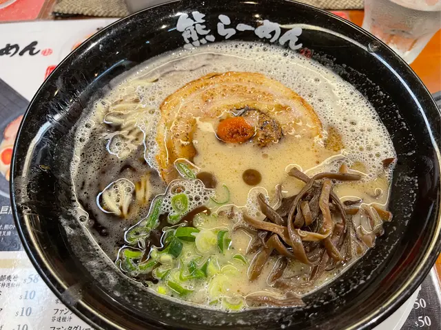第一次黎呢間拉麵點了黑熊-黑蒜油拉麵個湯底係超濃豬骨湯,超級濃好正加左黑蒜油很香濃的湯汁鋪頭比較細,唔係好多位但都坐得舒服的古唔到呢度既湯底咁好味份量都唔細的,加上個濃湯食到尾都會有點油膩,但都好滿足的…查看更多