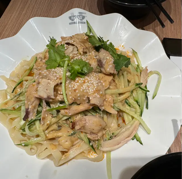 夜晚收工經過見到就入左去試下手撕雞涼麵 $57 - 古唔到佢d麵又幾好食,少少煙韌口感,唔會太軟個麵份量都幾大,叫了麻辣微辣剛剛好,唔會死鹹或者太辣。估唔到佢個面仲好食過佢啲手撕雞。另外叫咗洋蔥牛肉餅$36,好酥脆嘅外皮,餡料都好香口,係好有驚喜芫荽豬肉餃$59 蚊10隻味道就普通,冇乜太大驚喜.環境一般,座位有點窄,同隔離枱坐得好近.但食物質素幾高難得向中環唔太貴又好食.3樣野2個人食都夠哂飽,埋單只係152,抵下次過開呢頭都會再黎…查看更多