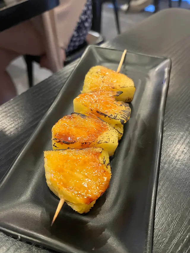 見到有好評,又有ig 讚,就係放假前夕黎里度試下。首先,個度大風同凍到不得了,係一般串燒店黎講,佢嘅室温係18度左右,算好勁,但另一邊箱,又有好大浸串燒味,隻眼仲nana地第二,黎到串燒店,都預左要等,但等超過九個字,都未有一串野食,不得了講返野食,牛舌係韌到不得了,煙肉荔枝串茘枝係sweet 嘅,算釣起到個味個大啡菇d 芝士醬係整得好好味嘅芫荽雞肉串入面嘅雞軟骨太大,雞肉比較散海鮮拼盤入面海鮮係新鮮嘅,可惜上面調味實在太敗筆芫茜肥牛卷係fresh 嘅,算係有驚喜同特別焦糖菠蘿係好味嘅,糖可以再薄d脆d芝士年糕係炸得香脆乾身,可惜來貨係無芝士味最後係白鱔,魚係厚同脆,係燒得好味嘅,剛剛好,骨都可以食埋,唯調味實在麻麻,太搶,完全蓋過哂魚嘅味道