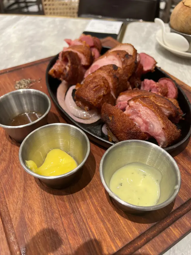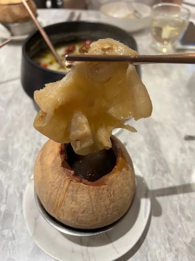 雙聚一刻 聚聚 2023-05-18椰皇雞燉珍寶花膠:熱辣辣、湯底清甜,大大塊嘅花膠充滿骨膠原。嚐聚酸菜魚:酸酸地但不辣,魚片都滑。火焰脆皮豬手:打卡拍片一流 , 店員將脆皮豬手點火,營造火焰豬手嘅效果,非常吸睛。然後攞返入廚房將豬手切件, 豬手錶皮吾算好脆, 肉質都燒到好香口, 可配黑椒汁、香草汁同埋芥末沙律醬。焦糖菠蘿咕嚕肉:菠蘿凍凍的但很清甜,咕嚕肉皮脆肉質 !焦糖燉蛋:還可以。…查看更多+ 2以上食評乃用戶個人意見 , 並不代表OpenRice之觀點。讚好分享雙聚一刻 聚聚 https://s.openrice.com/QrbT0ayQaW0檢舉 張貼 評分3味道4環境4服務4衛生3抵食推介美食椰皇雞燉珍寶花膠: 熱辣辣、湯底清甜,大大塊嘅花膠充滿骨膠原。火焰脆皮豬手: 打卡拍片一流 , 店員將脆皮豬手點火,營造火焰豬手嘅效果,非常吸睛。然後攞返入廚房將豬手切件, 豬手錶皮吾算好脆, 肉質都燒到好香口, 可配黑椒汁、香草汁同埋芥末沙律醬。嚐聚酸菜魚: 酸酸地但不辣,魚片都滑。用餐日期2023-05-18用餐途徑堂食人均消費$350 (晚餐)