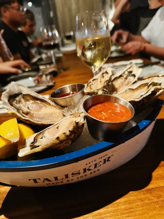 好耐都沒到尖沙咀吃晚飯,趁住有朋友生日就決定去尖沙咀Brick lane食晚飯,當去到餐廳坐低個陣.侍應話今日有個啱啱飛機空運到港嘅法國生蠔set供應,仲有杯白酒或者威士忌送,聽到一有生蠔即刻雙眼發光叫左2 set試下先,上菜時服務員都好有心機同耐性介紹返2款生蠔(水晶同海洋女神)既特質,點知真係估佢唔到,生蠔竟然咁新鮮同爽甜,個人就十分鐘意水晶蠔啦,蠔味夠,海水味又平均,聽講仲拎過法國金蠔獎!配埋白酒不得了最緊要仲要唔貴-$248/6隻,雖然本身想encore,但因為太好賣已經賣晒囉,所以已經預咗下次嚟要訂咗生蠔先