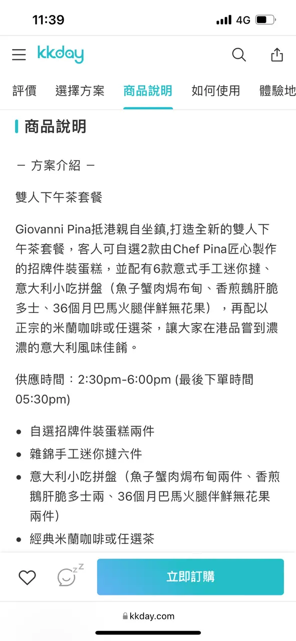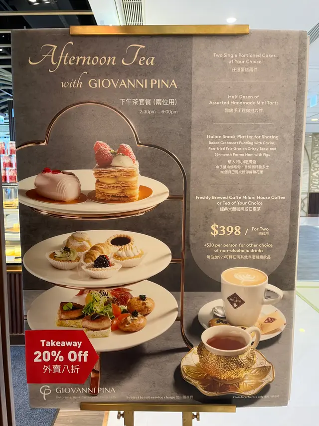 名不符實 失望的用餐體驗 Giovanni Pina Ristorante, Bar & Pasticceria 2022-04-15向來都冇點寫食評,但呢間餐廳名不符實,感覺被揾笨,令我寫第一次(件事有啲長)。話說早排行開北角匯,見到Giovanni Pina進駐,Afternoon Tea只係$398兩位,已經諗住同男朋友嚟試。後來見到網上介紹,好多Afternoon Tea用KKDay買都有優惠,Giovanni Pina都有$330兩位嘅優惠,評價都唔錯,就決定經KKDay買。我哋跟足指示,先喺KKDay畀錢,再預早一日打去餐廳留位。點知,呢個係失望嘅開始。我哋等咗一陣,餐廳安排我哋入座。我哋示意個職員過嚟落單,本身佢態度都OK,但一聽到我哋係KKDay訂位,就面色一沉。噉我哋照落單啦,餐牌明明係寫「經典米蘭咖啡或任選茶」,我上OpenRice同KKDay睇過食評,「任選茶」係包括English Breakfast Tea嘅,但呢位職員就話只包檸茶,English Breakfast Tea就要加$20。男朋友想要凍咖啡,職員就話要加$10,我哋就要咗熱咖啡。奇怪嘅事就出現了,我哋聽到另一位職員同隔離枱介紹緊呢個Afternoon Tea,呢位職員就話有幾款茶可以揀,凍飲亦唔使加錢。噉我哋即刻問呢位職員,到底Afternoon Tea係包邊幾款茶,佢就話係包English Breakfast Tea,唔使加錢,我哋就叫佢幫我哋換返。我見到OpenRice有人介紹用Storellet入會,可以有多6件迷你撻做迎新優惠。我又問呢位職員用KKDay訂枱有冇呢個優惠,佢態度本身都OK,點知佢一聽到KKDay,又面色一沉噉話冇,令我都開始懷疑杯English Breakfast Tea都係正價先包,用KKDay就唔包。其實「一分錢,一分貨。」正價包某啲飲品,用咗KKDay優惠就要加錢都係合理。問題係現場餐牌同KKDay都係寫「任選茶」,冇寫用KKDay就要額外加$20,食評都見可以揀English Breakfast Tea,去到先話要加錢,有啲感覺被呃!而且,用咗KKDay嘅特價優惠,就冇Storellet嘅迎新優惠,我覺得都好合理,但點解一聽到係KKDay訂枱,就即刻唔想招呼噉呢?其實貴公司如果淨係想招呼正價幫襯嘅客人,大可以獨善其身,唔同其他平台合作,無謂搞到職員同食客都唔開心!再講,畀到個好嘅體驗食客,食客自然會再幫襯,或推薦畀親朋戚友,而家噉樣似趕客多啲!再講食物質素,鹹點唔錯,但甜點就遜色,迷你撻嘅撻皮過乾,質素普通,名不符實。而且,雖然話係Tea,但平時食其他餐廳嘅Afternoon Tea都好飽,可以當Lunch咁滯,呢個就真係完全唔飽。總括嚟講,如果大家想去試嘅話,可能用返正價$398幫襯會開心啲嘅,但食物質素、份量就見仁見智喇!不過經過今日,我就唔會推薦親友嚟lu!…查看更多以上食評乃用戶個人意見 , 並不代表OpenRice之觀點。2分享名不符實 失望的用餐體驗 Giovanni Pina Ristorante, Bar & Pasticceria https://s.openrice.com/QrbT05u9200檢舉 張貼 評分2味道4環境1服務4衛生1抵食用餐日期2022-04-09等候時間10 分鐘 (堂食)人均消費$330 (下午茶)用餐優惠優惠券
