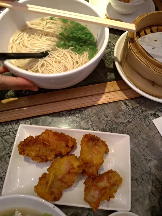 金鐘廊呢間翡翠拉麵小籠包午巿真係好多人架,之前可以用Gulu app預先排隊,而家只可以用返佢地專門既App黎排,12:15pm禁左張6人枱,12:35pm去到已經過左no.,好彩5張內可以同佢講返聲就比下張我地,等多10分鐘入得。呢到吸音差,嘈過街巿。我地叫左8樣野,餸比較細碟,午巿黎講都夠飽既:雞絲粉皮$60