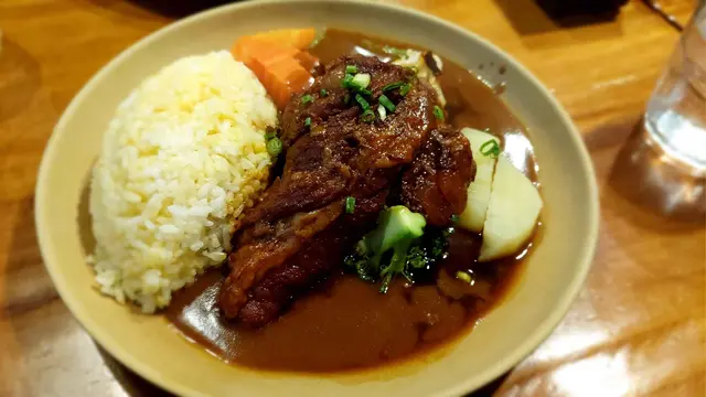 屋企人之前喺鰂魚涌呢邊返工,今次嚟開呢頭就嚟試下呢間屋企人推介嘅咖喱豬軟骨飯。接近傍晚嘅繁忙時間,舖頭都算好多人,不過坐得都唔算好逼。本身唔算係好鐘意食咖喱,不過一上菜嘅香味已經係同平時食嘅咖喱係兩個世界。咖喱係偏日式風格,香、甜、唔辣。豬軟骨超級稔,無論係肉定係軟骨嘅部份都係用匙羹輕輕一撥就可以分開倒。配菜嘅薯仔、西蘭花、紅蘿蔔一樣係好稔!豬軟骨、配菜、飯連埋咖喱食,係好食到令人念念不忘,值得推介!…查看更多