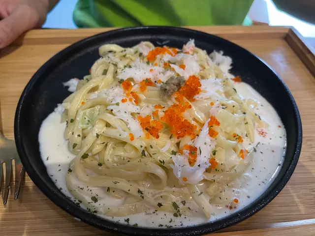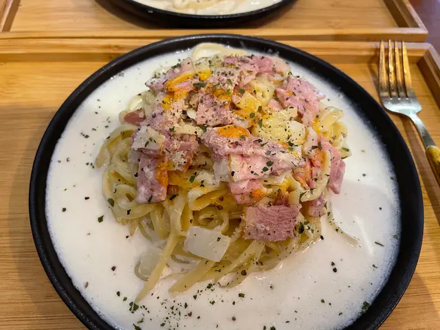 路過呢間元朗小店,俾入邊嘅昭和風裝修吸引仲播住日文歌,仲以為係食日本料理點知原來係主打手工意粉店員十分熱情有禮貌·每個套餐都有湯同埋沙律跟蘑菇湯濃稠好飲🍄沙律就好清,食到底個啲先有啲沙律醋味所以面頭嗰幾塊都係冇乜味~·試咗店員推薦嘅蟹膏蟹肉意粉少少失望蟹膏只有一點 就係張相見到中間個少少😮撈勻左之後基本係食唔到🦀蟹肉都係冇乜味~~不過意粉確實好味,中意食硬啲嘅意粉會中意好有𡁻口,啲奶油都好掛面🍝·再試左卡邦尼意粉發現兩隻面嘅底汁係一樣🍝幾好食,係蛋黃味唔夠如果煙肉係煎過焦香個種就好不過純粹係個人口味