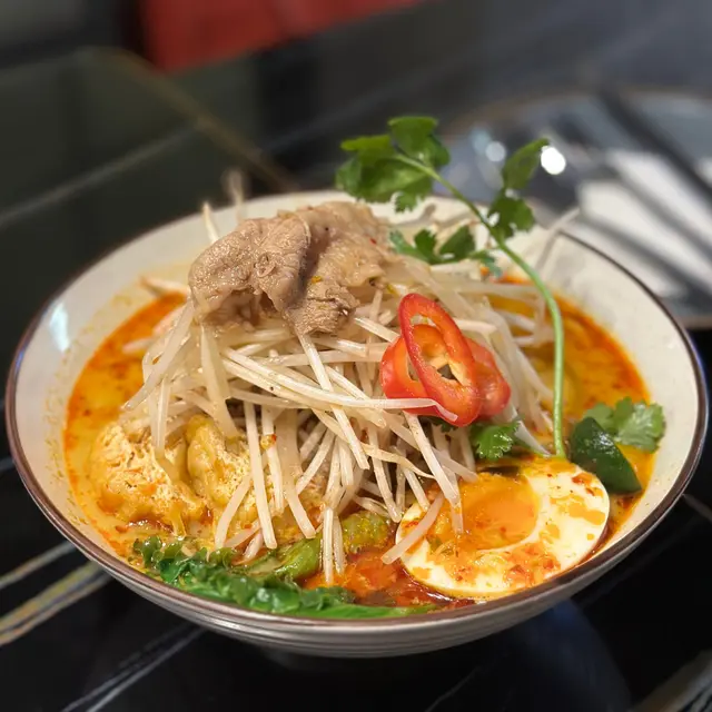 本身見到餐廳名已經覺得好特別,然後去到見到啲裝修同餐牌,就知餐廳走玩味新潮路線,成間餐廳俾客人一個輕鬆氛圍。叫咗4樣嘢,當中包括一杯飲料同後上嘅甜品~好卵!緊張咖喱麵 ($58)