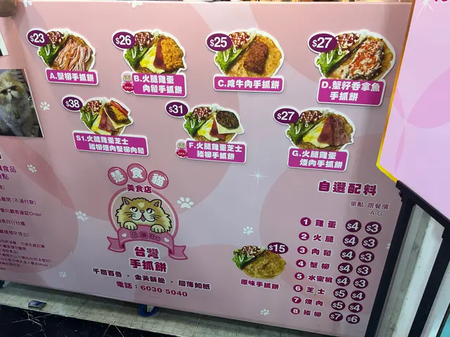 葵廣名物「慧食貓」到了旺角開分店😍 簡直是粉絲的一大喜訊,對我而言位置方便了不少✨ 「慧食貓」的手抓餅以足料聞名,每次吃一個已經非常飽肚了,實在是掃街的天敵🤣旺角店承繼葵廣店的傳統,放了硬幣架在收銀位置,自行找續。平時我都會點F餐或S1,這次想吃肉鬆,又不想吃太多餡料,決定試試B餐。B餐火腿雞蛋肉鬆手抓餅 $26每份手抓餅除了列名的配料外,還會有生菜中和油膩感,醬汁則主要是沙拉醬。B餐的主角是肉鬆,店家下了非常多肉鬆,整個手抓餅的厚度都被肉鬆支撐起來。店家選用的肉鬆很軟很散,不是硬的那種,味道偏甜,不會太鹹,配上雞蛋、火腿、手抓餅、醬汁和生菜很滿足。手抓餅很鬆軟,表皮帶點脆,口感很好,一咬便能咬開。旺角店質素不輸總店,看來以後想吃手抓餅可以到旺角解饞了😆…查看更多