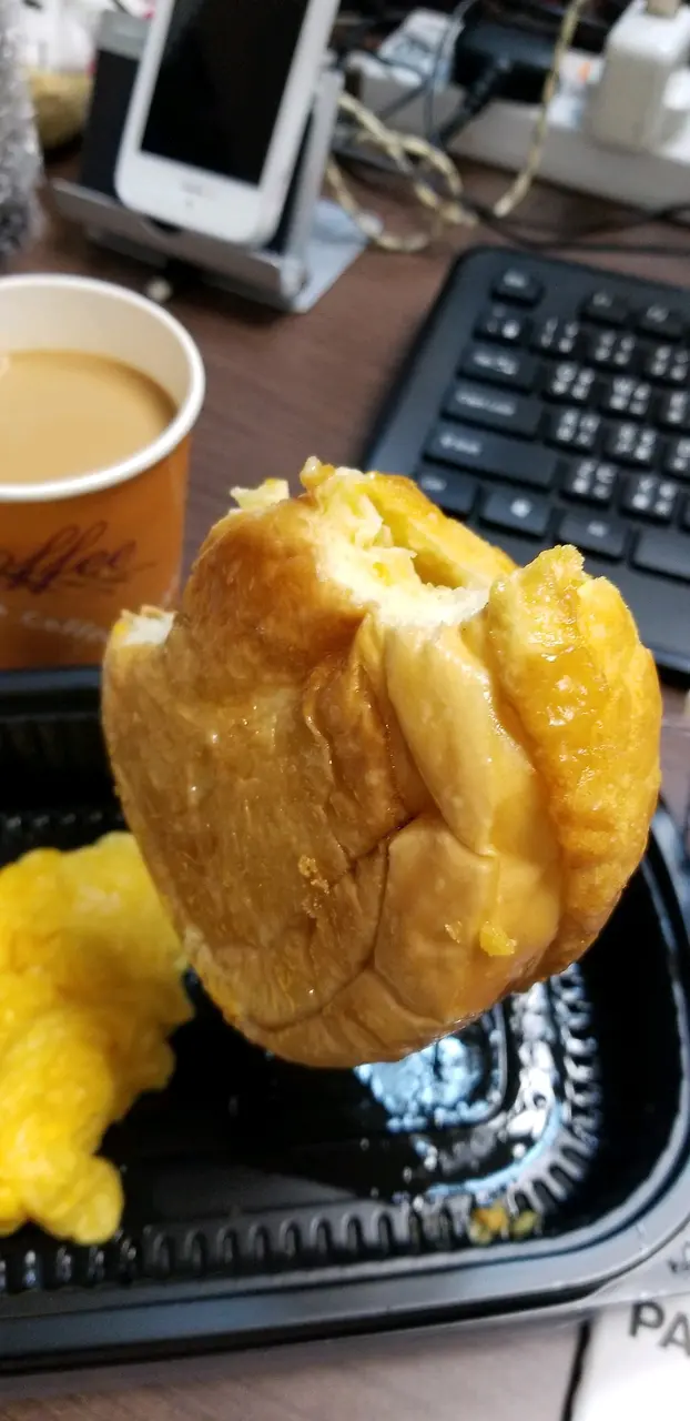 5分鐘唔洗 返到office ,打開菠蘿油… 牛油溶咗…