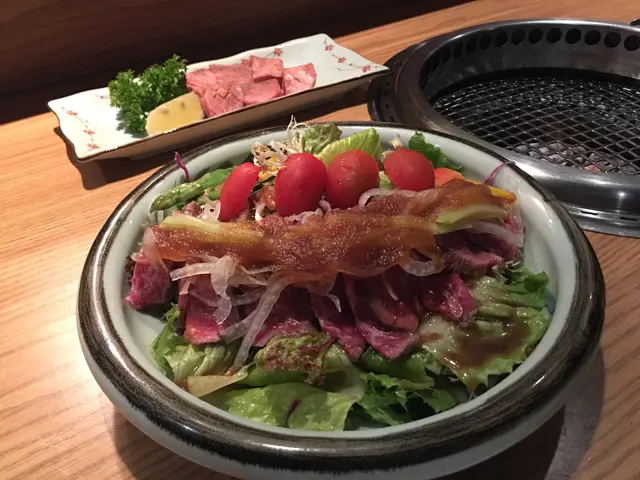 日式燒肉同串燒都係我嘅至愛,但如果有得揀,就梗係串燒正啲啦。對我來說,分別最大、最大嘅係,燒肉店自己嘅燒蔬菜永遠燒得不夠好,同埋種類少。所以,今晚嚟到和牛燒肉專門店,決定除了點個salad之外,專心淨係吃燒肉、燒肉同燒肉!首先,這裡的火炙和牛他他沙律不可以同西式嘅Steak tartare或韓式生牛肉相提並論,好在Menu上嘅嘢食都有圖睇,唔會有咩誤會。簡單嚟講就係一個日式沙律配好生吓嘅燒牛肉片,內有蘆筍、車厘茄及洋蔥等,食燒肉前打底必食。主菜方面,encore 上次喺尖沙咀分店食過好嘅厚燒牛舌,同叫咗特選和牛肉眼(鹽燒),之後追加咗和牛上牛排肉(汁燒)作比較。我們用心去燒,加上本身食材靚,係實好食嘅!不過坦白講,上牛排肉雖然比特選肉眼價錢平,但食起來感覺更好食,所以有時候不能說一定係一分錢一分貨嘅!何解為速食?就是因為跟餐廳協議了交枱時間囉!但這無損我們的心情,皆因我們也趕下場dinner噢!…查看更多