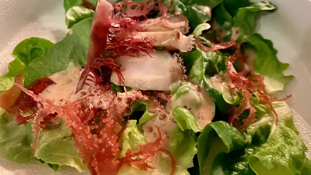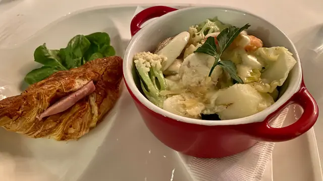 所謂精緻晚餐(fine dining),重點其實在於閒情。有了時間和閒情,你才能 mindful 地讓嗅覺和味蕾去感受每一度菜的味道。今晚既有閒情,也就即管精緻一下吧。頭盤是新鮮椒鹽鮑魚及紅海藻水耕菜沙律配芝麻醬及紅酒醋。這個配搭相當和諧。用少許椒鹽將冰凍鮑片的鮮味點了出來,加上鮮嫩的海藻和蔬菜配以芝麻沙律醬,引發了對之後幾度菜的期望。跟著的法式黑松露炒蛋,看來簡單,卻正是廚藝的真正考驗。蛋的生熟程度處理得恰到好處,不生不硬,上面的黑松露不僅是一種點綴,而是毫不喧賓奪主地帶出鮮蛋的香味。餐湯我仍然是捨棄了法式龍蝦湯而要了黑松露蘑菇湯,倒不是著迷黑松露,而只是想喝蘑菇湯。不用說這個配搭是渾然一體,相得益彰。主菜我要了香煎美國安格斯肉眼配紅酒燉牛面頰肉,配燒汁。將兩種完全不同處理的牛肉放在一起,竟如此自然地對照出彼此的特色!太太要了北海道帶子、大蜆、海蝦及魷魚,法國頂級康堤芝士忌廉汁,配以法式火腿牛角包,竟無意中跟最初的頭盤互相呼應,接續著海洋美食的主題,發揮得淋漓盡致。最後的甜品我要了焦糖燉蛋,太太則要了朱古力心太軟吉士,傳統的口味,一貫的水準,如此就完結了一頓美好的精緻晚膳。在服務上扣了一粒星,是因為上湯的時候溫度略為不足,想是預備好放了一會才拿出來吧。…查看更多