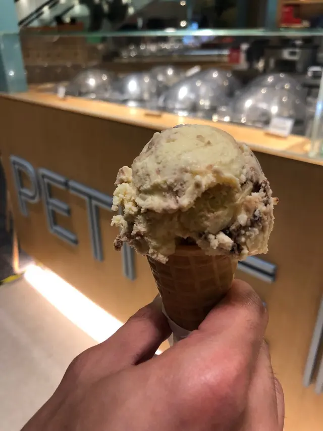 我喜歡吃蛋捲筒,如果不喜歡,還可以選擇杯裝。蛋捲筒很脆,還算挺香的。曲奇🍪 這個是男友選擇的,里面有曲奇碎。搭配空氣感十足的雪糕,不會太單調。因為有買一送一的優惠,所以以上兩個gelato只是$40。