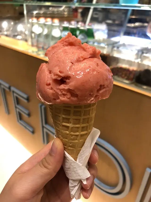 可以選擇不同的味道。幸好我還是學生,可以享有優惠。士多啤梨 🍓 一球筒裝 $40這味道十分清新,不會有藥水味,是新鮮水果的味道。吃上去好解渴。夏天吃一個真的感覺很好。