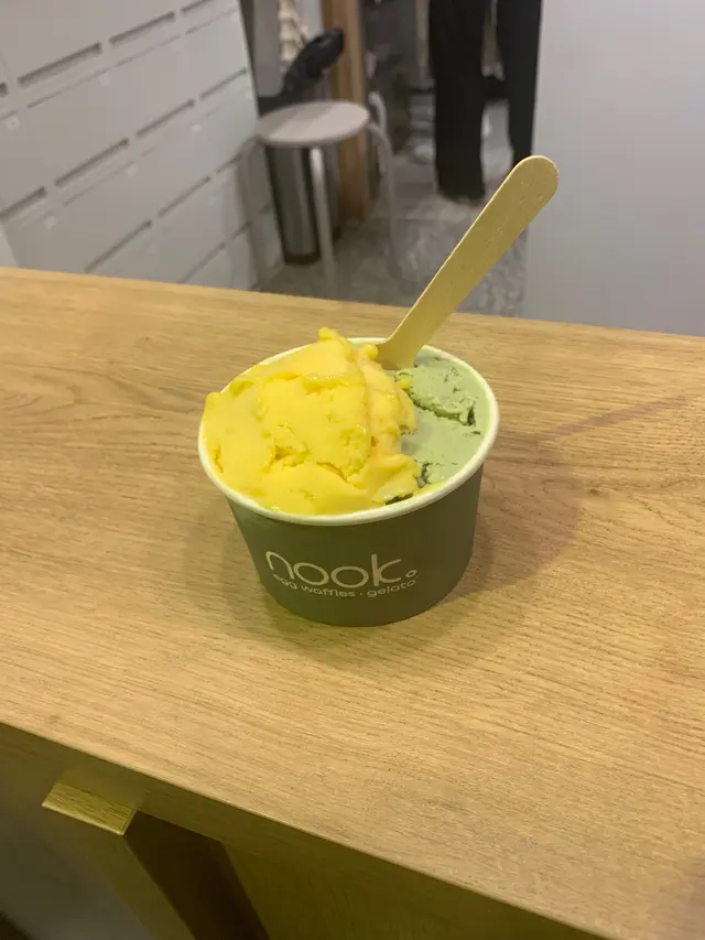周未晚上的甜品 NOOK. Eggwaffles & Gelato 2025-06-21剛剛探訪完媽咪,在周邊發現了一間雪糕店。竟然有我喜愛的開心果和芒果。令我想起在澳門出名的雪糕。每次去澳門也會去吃。店員是個甜美的少女,和諧可親。真是藉得推介給朋友們去一試。有時留意身邊的小店,會有意外的驚喜。眾裏尋他千百度。好味的小店就在你身邊。晚餐後最佳甜品。…查看更多+ 1以上食評乃用戶個人意見 , 並不代表OpenRice之觀點。讚好分享周未晚上的甜品 NOOK. Eggwaffles & Gelato https://s.openrice.com/QrbT0nH1T00檢舉 張貼 評分4味道4環境4服務4衛生4抵食用餐途徑堂食