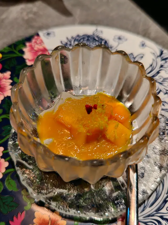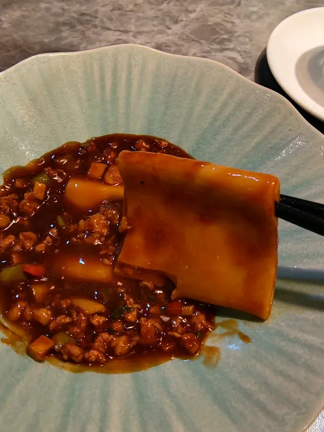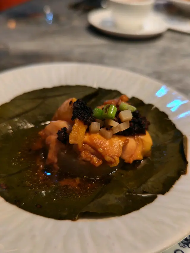 踏入餐廳,邂逅 “世味人生” 菜單。展開一場舌尖上嘅驚喜之旅。 首先登場甜椒醬蟶子皇,冰鎮嘅蟶子皇彈潤脆爽,甜椒醬添咗鮮甜微辣,層次頓生,簡直就是開胃絕配。緊接登場前菜三弄;百香梅茄將義大利番茄與百香果、柑橘汁相融,酸甜在舌尖綻放,恰似夏日驟雨後嘅清新;三絲海蜇爽脆帶勁,彌漫著海嘅鮮咸;20年古越龍山花雕浸鮮蝦最為精妙,花雕嘅醇厚慢慢滲入彈牙蝦肉,輕輕一咬,酒香與鮮味在口腔爆發,仿如舊日時光緩緩流瀉 。 杏汁肆菓燉螺頭湯濃稠綿潤,杏香悠悠繚繞,螺頭軟糯入味,每一口都似在輕撫味蕾,熨帖身心。 蟬衣玉帶頗有巧思,香煎大帶子鮮嫩飽滿,脆芋絲裹於其上,咬下去先是輕脆,後是帶子嘅柔軟,口感交織,妙趣橫生。海苔蔥燒銀鱈魚,銀鱈魚經深炸依舊嫩滑,海苔與蔥嘅香氣層層鋪墊,鹹香鮮美,令人回味。荷香子薑欖豉醬蒸雞,雞肉細嫩,子薑提鮮,欖豉醬賦予獨特鹹香,荷葉香若隱若現,增添咗幾分雅緻。 魚香手功寬麵將魚香風味融入寬麵中,鹹甜辣平衡得唔錯,食起嚟十分過癮。收尾嘅香芒雪燕烏豆花,豆花滑嫩,芒果清甜與雪燕嘅輕盈相輔,恰似一縷清風,拂去滿腹油膩 。 “世味人生”,從食材配搭到烹調,處處隱藏著心思,響味蕾間演繹出豐富嘅層次,將中餐嘅精緻與創意色釋數盡現,叫人食完仍舊念念不忘,盼望再次及時行樂。…查看更多