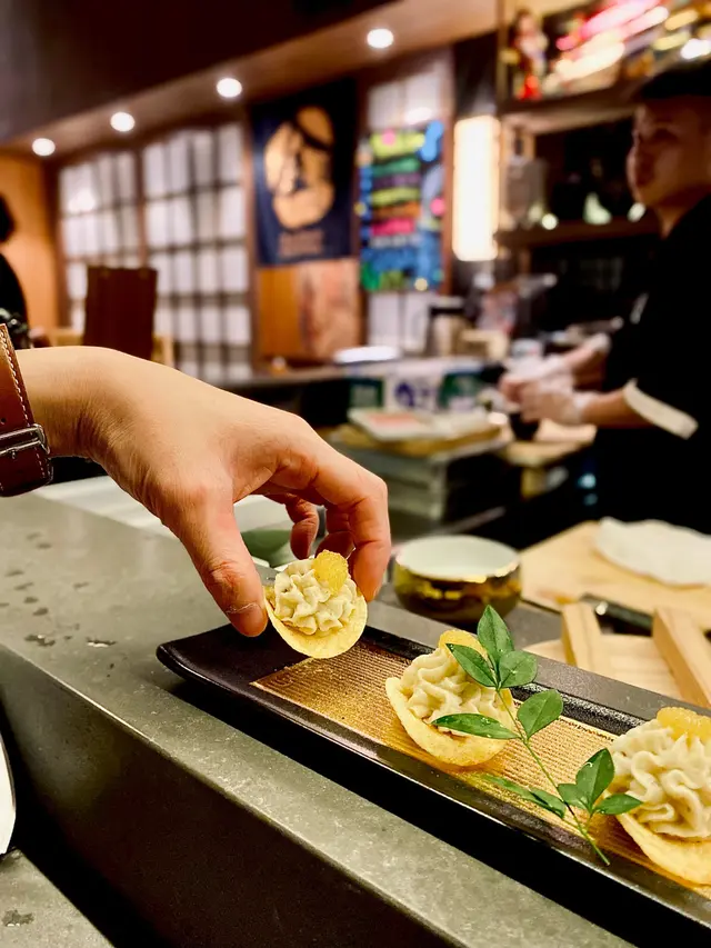 金酒屋🏮|荔枝角 新開居酒屋 鮮美刺身 惹味串燒 和牛饗宴|《居酒屋》💕最近荔枝角新開咗一間居酒屋,環境都唔錯,幾舒服,有bar臺位置,仲有榻榻米獨立房間可以預約。個人就幾鍾意坐係bar臺,睇師傅一路整我地嘅餐點,係另一種嘅體驗🥔秋田煙燻蘿蔔薯仔脆脆作為前菜黎講,都幾特別,以柔軟嘅薯蓉配上薯片,鹹香,又脆,味道唔錯🦐自製雞皮蝦尼道菜式真係好驚艷,用咗薄薄嘅雞皮包裹住大大隻蝦慢燒,香口得黎唔油膩,蝦肉仲好彈牙,鮮甜,真係唔錯🐮宮崎和牛海膽刺身厚薄剛好嘅和牛刺身包裹住金黃嘅海膽,估唔到佢地嘅配搭都唔錯,好軟好滑,仲要好鮮味🌙月見薄燒宮崎和牛飯尼款打卡之選,一大片薄和牛上放咗小飯糰同蛋黃,師傅仲會即場燒和牛,一路燒一路激發咗和牛嘅香氣。仲好貼心咁準備咗3款調味料🌙月見宮崎和牛卷尼款係會令人越食越上癮,香蔥同和牛都好夾,配上蛋黃,味道更加濃郁🌟金丼(月見海膽三文魚籽拖羅蓉)尼款刺身丼真係好讚嘆,鮮味爆燈,啖啖都係刺身嘅先味,海膽除咗鮮甜,仲好濃郁,三文魚籽經過自家醃製,更加特別,係嘅口爆汁,拖羅蓉好夠鮮味,好滿足呢🐮安格斯牛肉鰹魚湯稻庭烏冬安格斯牛肉片比得一d都唔吝嗇,每片都好大塊,有少少好似生牛肉湯河嘅概念,熱湯慢慢浸熟牛肉,湯味更加鮮甜,又帶出牛味,烏冬唔洗講,彈牙係必須的…查看更多