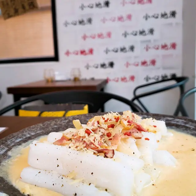 忍唔住要還返一首歌比佢,店主有心思地將每杯飲品用感覺配上歌詞,幾特別!呢杯就係除旋律變化即興又如何雖然食物真係等得耐少少,不過好岩假期relax!值得等,因為野食真係有d 驚喜! feel 到店主用心制作,所以野食都即叫即整,包括餃子!話說唔知有無新鮮豬肉,我地3點一開鋪到既時候,廚師正出外揾新鮮食材,好在最後揾到先有得試!所以真係即刻包嫁!咸蛋黃醬炸薯條,偏淡味,咸蛋黃醬味唔夠濃推介卡邦尼炒腸粉,係佢地招牌之一,的確有驚喜!sauce 唔會太濃太杰身,唔會有好漏既感覺,抵讚!洋蔥好香!蒜蓉牛油炒雜菌,正常發揮!總括,係中環一個可以比你relax. hea 一個下畫既地方,價錢絕對合理,適合慢活人士!温馨提示,佢地招牌菜係慢煮豬腩仔,同普洱茶雞翼,豬腩仔因為慢煮加每日新鮮整係晚市先有得試,而雞翼都係要雪既關係,限量的!…查看更多