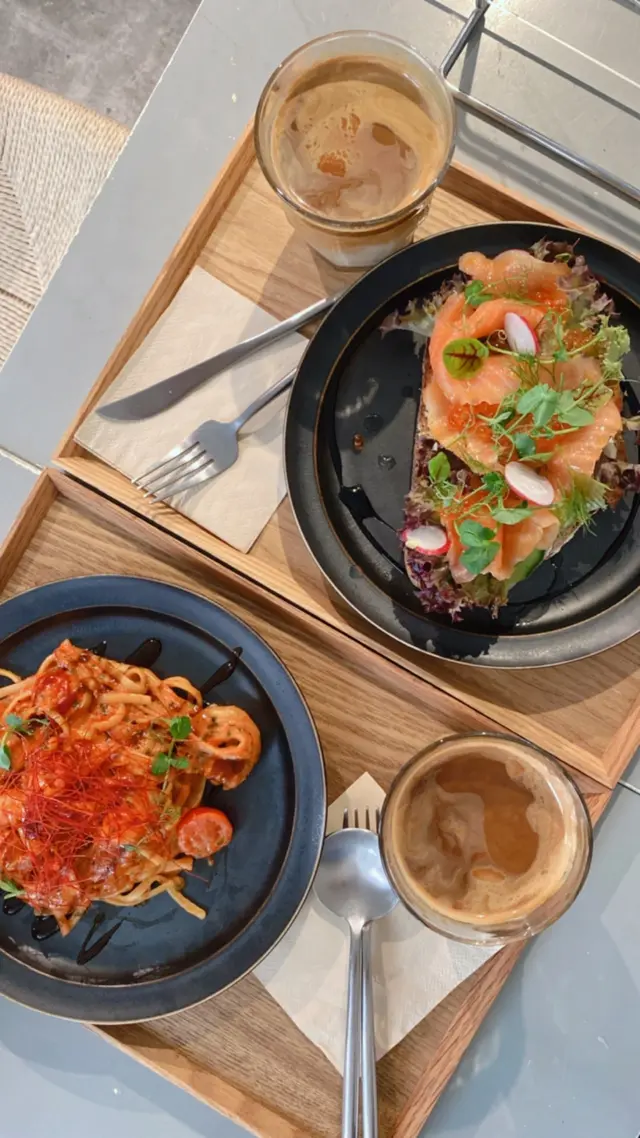 估唔到呢間cafe除左用黎靚靚打卡仲有高質素食物,有驚喜到🤩揀左星期一平日去,人不多等左一陣就有位,自助點餐拎餐有自助斟水位供應,加分~因為本人食野成日要飲水Prawn Paste with tomato sauce一入餐廳已經聞到香味,朋友話想試於是叫左果然好好味,個sauce好出色,酸酸地令人好開胃蝦都好爽口,唔會鞋~另一個係Toast with salmon,時間覺得太耐,唔記得咗,只記得都係好好味。包是煙韌的。咖啡點了Dirty, 奶份量很好,沒有遮蓋了咖啡的香味。…查看更多