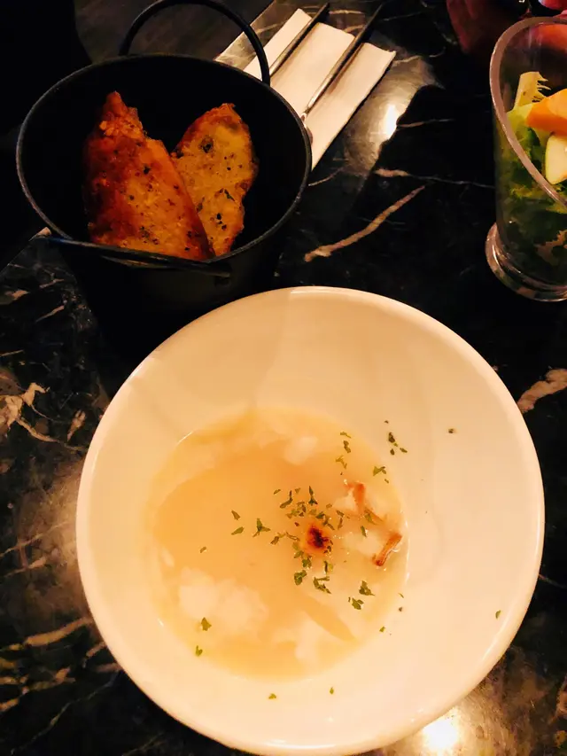 早前去元朗工作,順道約朋友到新商場 YohoMiX 覓食。作為旺角 Pause It 的粉絲,得知他們在這裡開了分店,當然要第一時間來支持。元朗店空間感十足,裝潢型格風,座位之間有足夠距離,坐得相當舒適。我們點了兩個午市套餐,再追加了一件蛋糕。套餐可以選餐湯或沙律,我們都要了一份甘荀湯一份沙律,湯頭非常濃郁,入口充滿甘荀的天然甜味,很不錯。