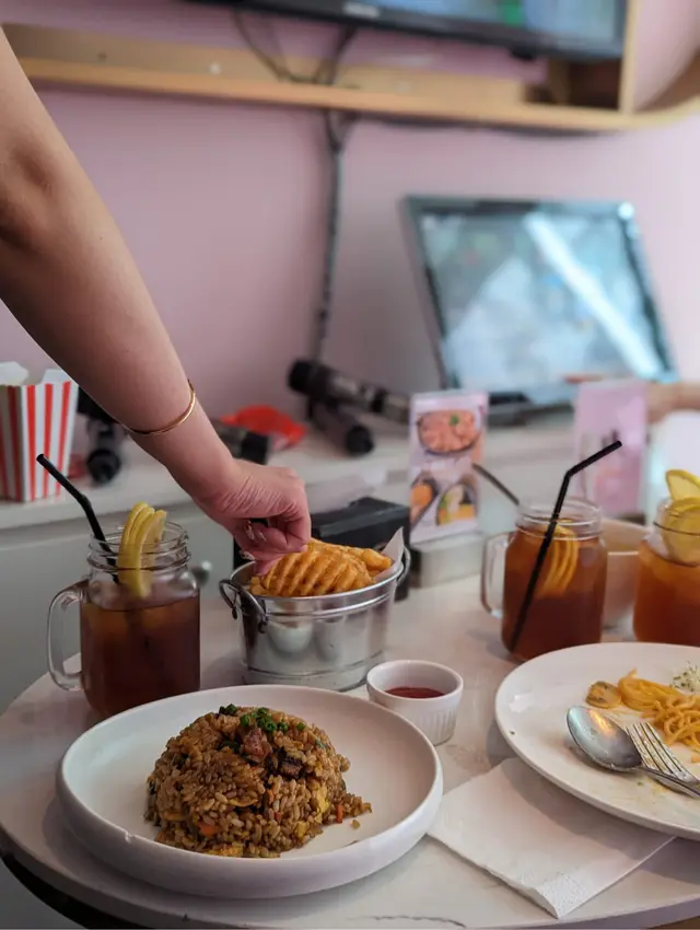 上星期同事原來收工去咗COSMOS,今日Lunch 又話好想再去唱K,就陪佢再來。 有Staff 同我地講原來限期內做會員有好多優惠,仲可以即刻enjoy 到, 我地點了和風鰻魚炒飯和脆炸薯格,即刻開波食住唱! 點知俾我搵到有韓團最新既歌!!!! 歌庫都幾新同闊, 食住野唱歌真係好Chill! 鰻魚炒飯色水唔錯粒粒飯都沾到汁,有日式炒飯既味道,食到鰻魚粒幾香口仲有D 菜粒幾爽口。識我都知我係薯格愛好者, 而呢度既薯格我敢講係令人印象深刻, 好脆口! Lunch 來講可以唱卡拉OK 又食到好野,值得推薦俾大家!…查看更多