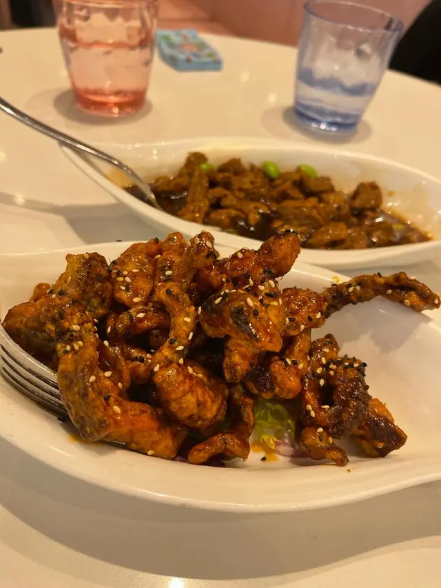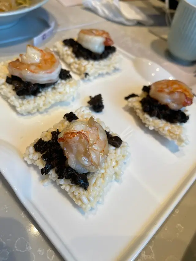 ⭐蜜汁金華火腿烤雙方極意外! 甜+咸味混搭嘅組合再加青瓜,脆脆炸腐皮,軟軟嘅夾餅皮! 呢道菜作為前菜真係加分! 好好味吖~⭐三角海鮮餃外表極精緻,呢塊皮嘅顏色同外表我地十分欣賞!