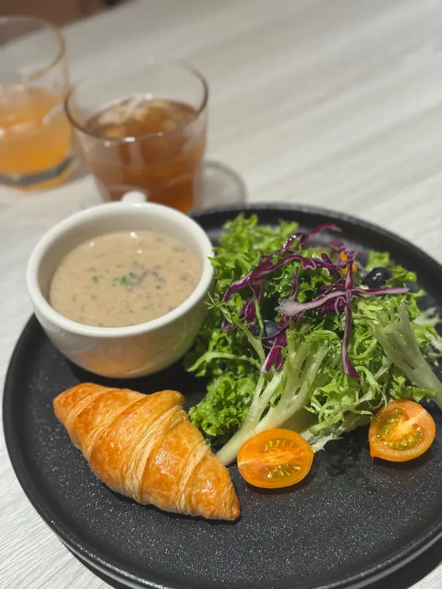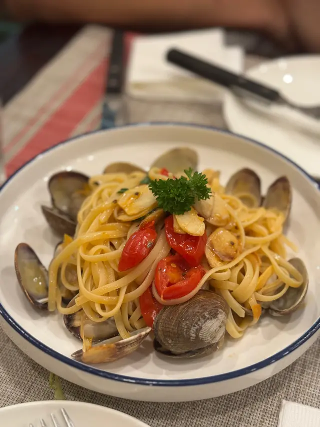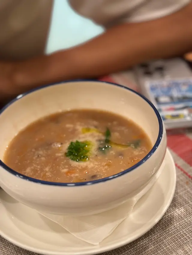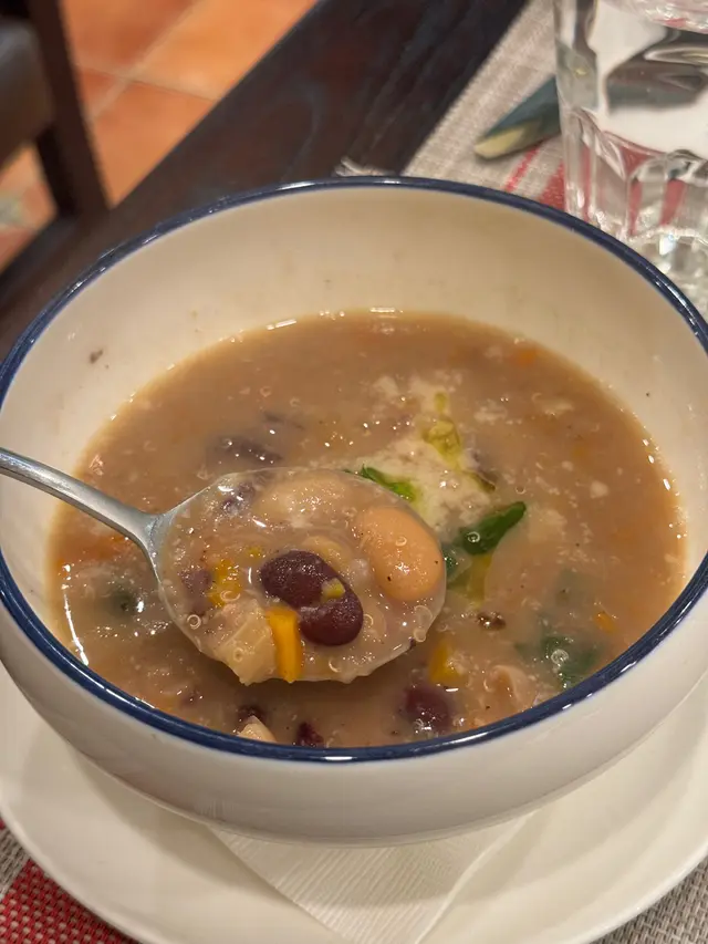 平時好少行過嚟尖東,咁啱今日喺附近做完嘢就食埋飯先走 。呢間餐廳又有雪糕店,又有超市仲有得堂食 。晚餐有三款選擇,揀咗set 1同set 2,每款都有前菜主菜同埋甜品 。🍴雜豆湯份量比一般餐湯多,而且有好多料,分別有唔同嘅豆類同埋有藜麥 。好欣賞佢夠熱,飲落好重黑胡椒味,帶少少辛辣感,今日秋意下飲呢個湯係幾舒服同飽肚 。🍴招牌沙律首先俾個份量嚇親,好少見到套餐附嘅沙律係咁大兜 。沙律有沙律菜、雞蛋、吞拿魚、疑似鯷魚、橄欖、蕃茄乾等等 。整體食落係鹹香,沙律菜亦好爽脆 ,唔錯 。🍴蜆肉意粉啲蜆肉好大粒之餘,保留到蜆肉嘅水份同鮮味 。雖然調味比較清淡,但連埋蒜片食好香,意粉口感亦都煮得好好,意想不到地出色。🍴半隻烤雞烤雞睇落比較乾,食落發現雞皮非常之脆,雞肉除咗胸位有少少嚡之外都可以接受 。側邊嘅烤時蔬同薯仔意外出色,薯仔外脆內軟,仲要好甜。好想encore個薯仔 🍴甜品揀咗一個雪糕一個Lucky cake,雪糕就係門口嗰間Gelato嘅雪糕揀咗開心果味,開心果味香濃,唔會好假,就算係正價$38嚟講都幾抵,但係略嫌面頭灑嘅朱古力針有少少影響口感之餘又增加一份假甜 ,強烈建議請店員唔好加朱古力針 。而Lucky cake我真係食唔出係咩蛋糕,係我從來未食過嘅口感,但味道幾好,配搭上面嗰球雲呢拿味雪糕一齊食都唔錯 。外籍女店員好有禮貌,亦都好細心會幫手換碟 。餐廳睇落平平無奇,食落每樣嘢食都比想像中出色,而且有唔少外國人獨自用餐,睇嚟都幾得外國人歡迎。…查看更多