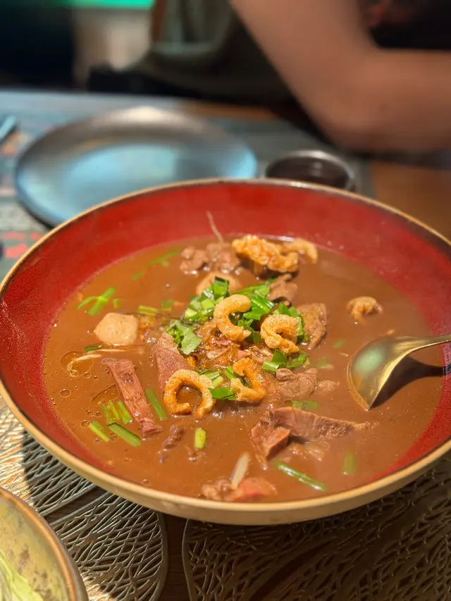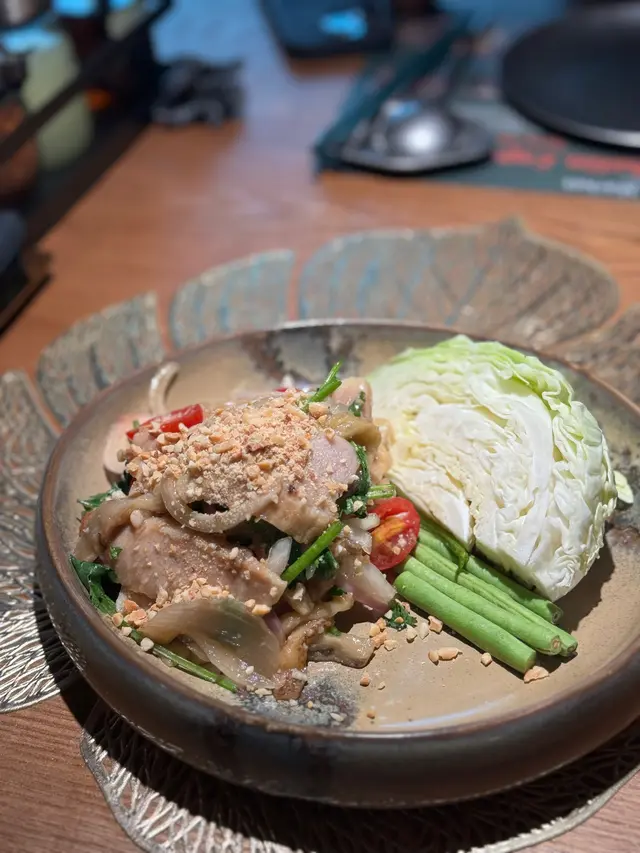 餐廳應該係新開,佔地好大,門口睇落好多人食緊飯,但原來入邊仲有好多位 ,唔使等 。睇餐牌嘅價錢就中規中矩啦,裝修同埋餐具都幾特別。豬頸肉茄子沙律豬頸肉佔大部份,調味都幾有層次 ,唔會好辣但開胃 。店員冇講吓係點食,我估隔離個椰菜應該係當生菜包咁配住食 。不過原棵真係有啲難分黎食,如果可以不如提供椰菜絲。船河(牛筋/牛頸脊/牛丸)有四款麵底揀,我揀咗闊河粉。睇相都見湯底好濃郁,配搭埋枱面嘅辣椒粉就更加惹味 。咁多款配料中最鍾意牛筋,炆到好腍。黃咖喱蟹肉飯呢個雖然有好多蟹肉,但食落有啲失望,黃咖喱汁太甜,亦都唔係好有層次,整體比較普通 。燒原隻魷魚酸辣汁惹味,配埋燒到好香嘅魷魚係冇得輸香茅青檸沙冰大大杯,酸甜平衡得幾好椰青水清甜解辣…查看更多