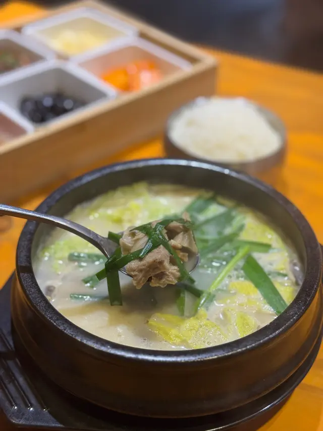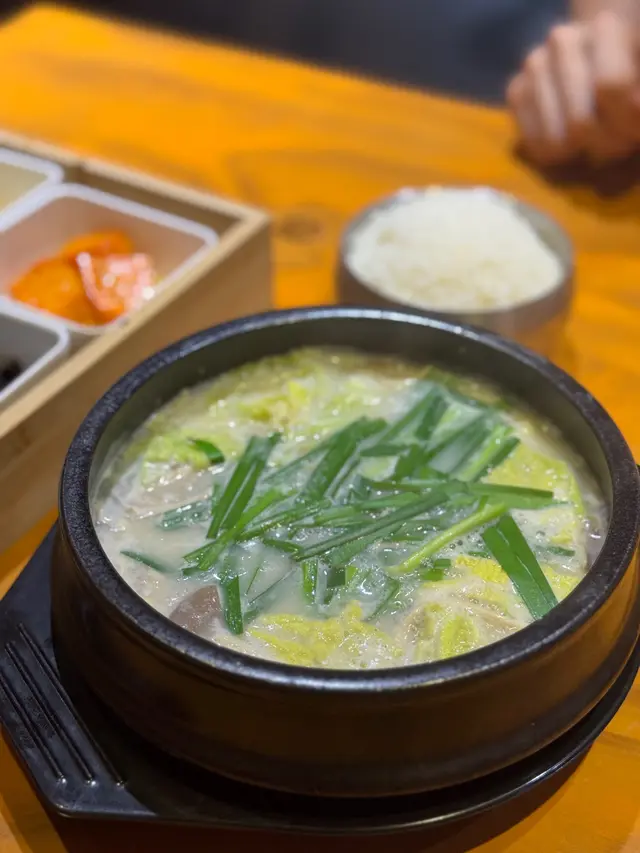 呢輪睇完黑白大廚,就想瘋狂食韓國嘢,睇戲前同friend揀咗呢間特別啲,有香港少見既釜山豬肉飯嘅餐廳試吓。仲有一個鐘就開場,快手揀左釜山豬肉湯飯、釜山豬肉湯麵,同埋醬油蝦意粉。店員放低左一盤韓式前菜,種類都幾豐富,除左常見既泡菜類,仲有炒粉絲、甜蕃薯等。好快就上菜,釜山豬肉湯湯底奶白色,當中有韭菜、娃娃菜、豬肉等。飲落鮮甜得黎幾清,豬肉片有口感,整體有種屋企feel,有別於一般韓國菜又辣又重味既印象。另一款釜山豬肉湯麵,麵質類似上海麵,較軟身,湯底相比起湯飯較淡,個人比較喜歡湯飯。餐牌上最特別係醬油蝦意粉,好奇醬油蝦點樣結合意粉。味道又幾香,食落係醬油咸香加左cream既奶感,意粉質地彈牙。呢個組合創新得黎又幾夾,值得一試。食完就夠鐘睇戲啦,下次去尖沙咀都會想encore湯飯。…查看更多