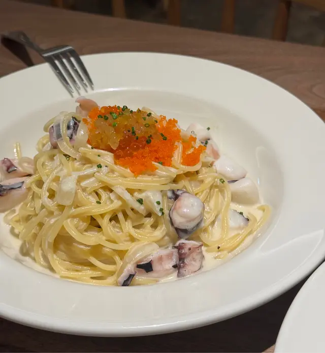 Cobber noodle and Waffle係觀塘早已出曬名,新開呢間地理位置比較方便,唔使上樓,又近巴士站。個日平日夜晚時間都full house,係而家呢個市道算少有。呢間分店特色之處係只要每人都有叫一客野食就可以享用自助飲品吧。款式都唔係hea,最推薦Grape Earl Grey Tea。🍳牛角包+黑松露蘑菇湯+沙律(+$25)🍳明太子忌廉蝦肉三文魚子飛魚子紫蘇意粉呢個係Cobber名物之一,意粉口感好豐富,紫蘇嘅香氣係錦上添花,呢款絕對係穩陣之選。🍳香煎白酒忌廉汁三文魚配煙燻薯蓉三文魚外脆內嫩,白酒忌廉汁同面頭嘅茴香都係帶酸,可以減低三文魚同薯蓉油膩感。🍳蜜糖芥末炸雞炸雞keep到juicy,可以一試。🍳開心果巴斯克芝士蛋糕呢個高質!蛋糕表面鋪滿烘脆嘅開心果,芝士蛋糕中間位置有軟心,開心果味又好濃,意想唔到嘅好食!成餐飯唯一個不滿點係梳化位比較矮同軟,食野時有啲辛苦,但食物質素絕對係有保證。…查看更多