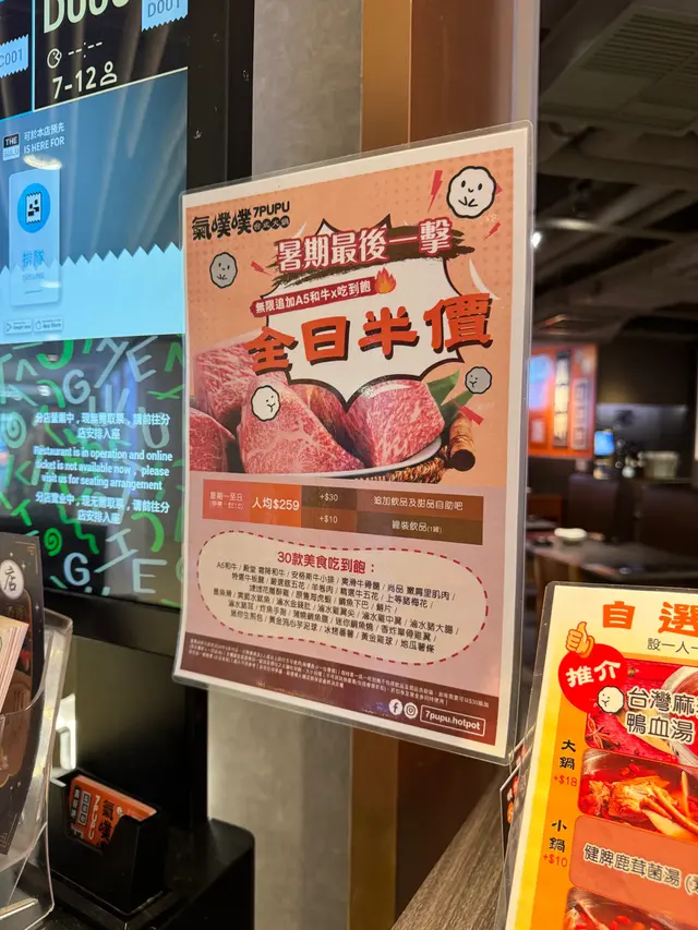 行過見到A5和牛全日半價,加埋兩個人先五百幾蚊,平時食普通放題打邊爐都要呢啲價錢 。呢個價錢可以試晒全間鋪唔同款嘅牛肉同配料 。鍋底方面唔使加錢可以揀鴛鴦鍋,試咗藥膳鷓鴣湯、酸菜白肉湯 。湯底唔算好濃味,中規中矩。每人包咗杯台式飲品,揀咗杯檸檬愛玉蜂蜜綠茶、荔枝蘆薈紅茶,係出街嗌嘢飲嘅質素,計落又好似再抵左 。最出色係啲牛肉,好多時台式火鍋放題敗筆都係牛肉切得比較薄,食唔出肉嘅質感 。今次叫咗幾款肉都唔會切得太薄,食落有口感 ,同埋會分到每款牛有咩唔同 。A5和牛非常大片,記得唔好淥太耐,雖然唔係靚到入口即溶個隻,但好有滿足感 。霜降牛油花好重,比較軟腍 。牛小排油花比霜降牛再少啲,冇咁易食膩 。出面有大量嘅蔬菜同配料自己揀,仲可以QR code落單。推薦單骨雞翼、鱔片、蝦、萵筍、年糕 。最後好想讚吓啲店員,幾個都好細心同有禮貌,加湯會提我哋小心彈到,又會主動俾多兩對筷子我哋夾生肉,仲會主動俾紙巾 。…查看更多