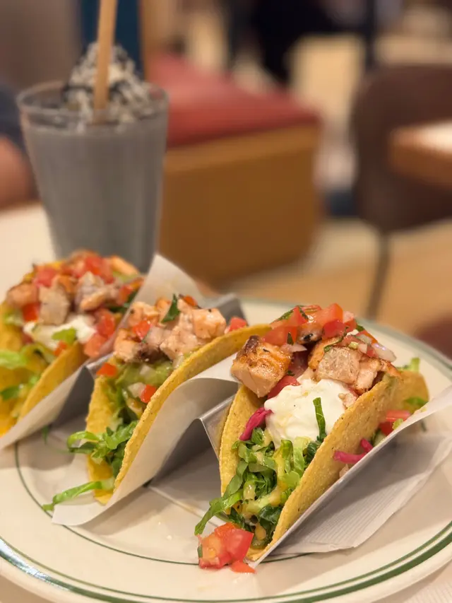 喺Facebook見到人哋推介佢嘅薄荷朱古力奶昔,先知原來MOKO都開咗呢間 。嚟到呢度一定要叫奶昔,今次試萬聖節限定嘅芝麻奶昔 。面頭灑咗好多黑芝麻,飲落唔會太甜,又帶有芝麻嘅香味,值得一試。前菜揀咗taco同埋青口我欣賞佢taco入面嘅一口三文魚,煎得啱啱好,唔會太乾硬,夾埋莎莎醬、牛油果醬、酸忌廉一齊食,成個組合好開胃又好夾 。忌廉藍青口被比下去,側邊兩塊方包烘得好香脆,亦都好重牛油味 。雖然藍青口幾大隻,但藍青口肉質比較實,忌廉汁都唔算太香 。兩款前菜比較之下taco完勝!主食方面,揀咗Carbonara同埋牛扒 。Carbonara麵質al dente,亦都有煙肉同埋蘑菇增加口感 。不過個汁有啲太傑要趁熱食。呢個牛扒之前食過都覺得幾好食,今次一樣冇失望。揀咗五成,配菜有啲薯條同埋烤蔬菜 。牛肉軟腍,薯條炸到好香脆,呢個價錢覺得幾抵食。已經食唔落所以無嗌到好出名嘅pancake,如果唔係都幾想試吓芝麻版本 。下次encore都係會嗌返奶昔、牛扒同埋taco。…查看更多