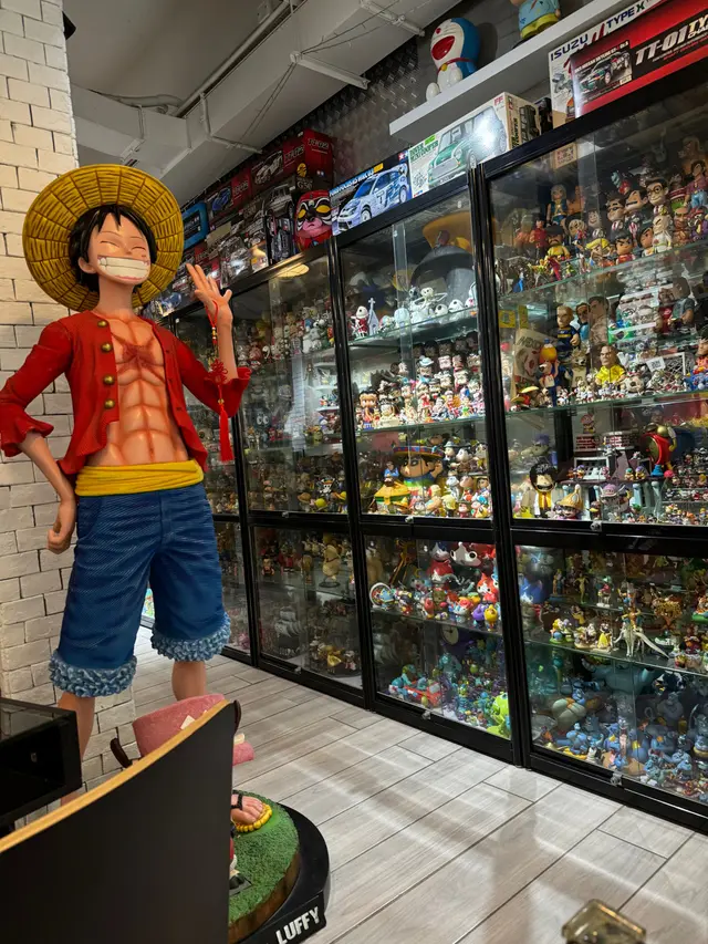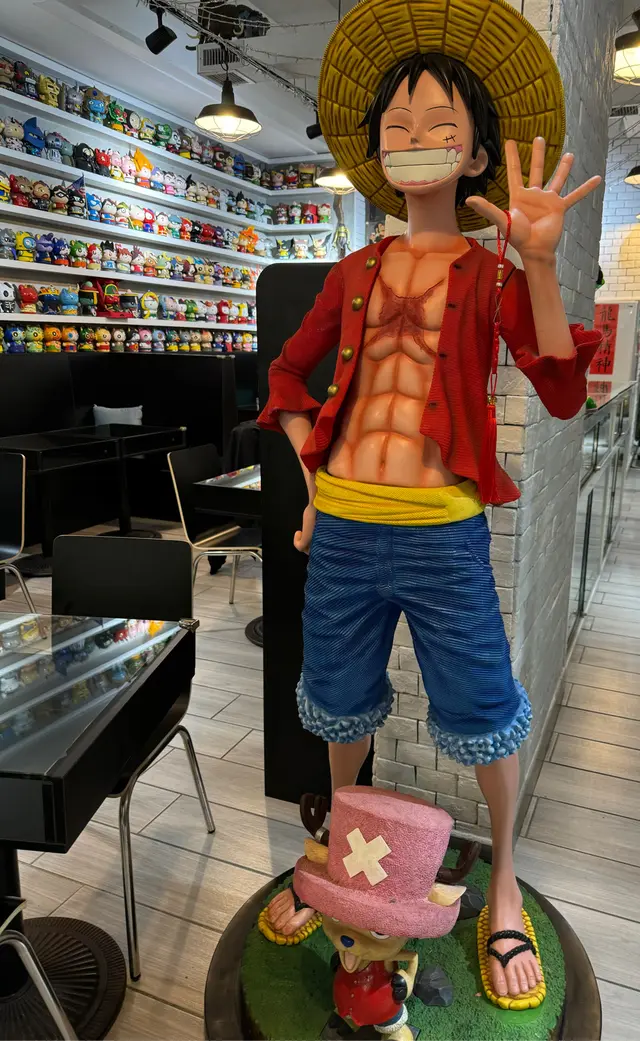 淨係睇餐廳門面完全諗唔到呢間係一間無五辛、無蛋奶嘅素食cafe!因為呢間cafe充滿童真,入到去會俾不同種類嘅模型玩具包圍,首個映入眼簾嘅就係1:1嘅路飛模型!