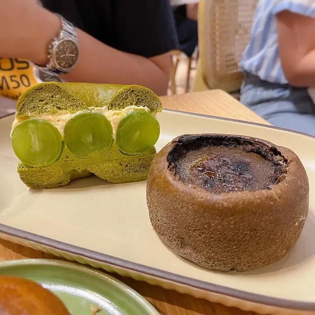 焙茶焦糖布甸包