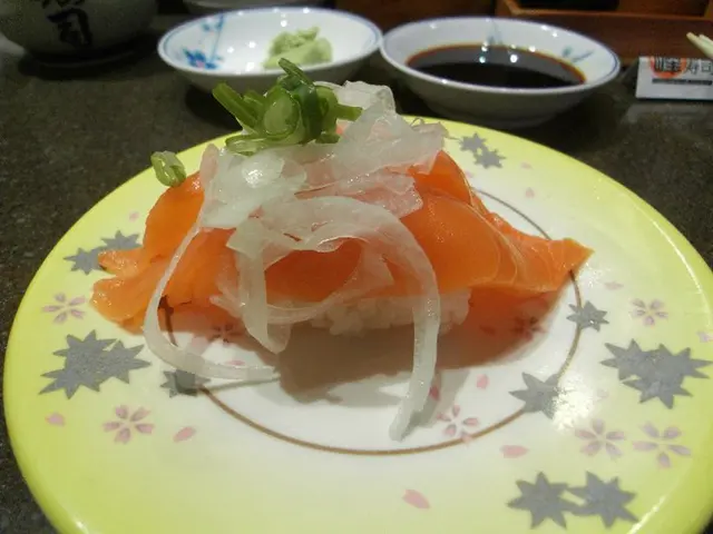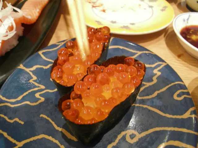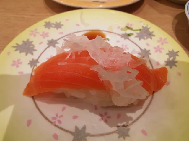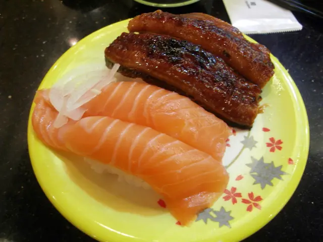 個人比較會喜愛用膳前去做research先!這間亦不例外~在地庫內,轉扶手電梯一眼望見!因下午三時左右,客人不多,一輪職員大嗌「二三些」的招待後,接著坐壽司吧!職員都好好笑容,應客人都好快(可能人太少)餐牌上有輕微改動, 無左super , Fine!食物如下:三文魚: 我的例牌,加了洋葱好味D,多飯更好!三文魚手卷:新鮮夠大塊!自己會再加Wasabi,我好少同醬油mix哂係碟上!三文魚子:大粒同好多......咬落去卜卜聲,睇相