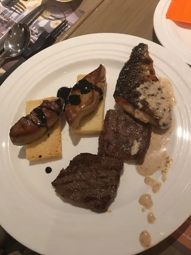幾位6月之星, 一齊慶祝, 上openrice有前菜, 主菜及半自助甜品及頭盤, 就試下, 奇怪只有銅鑼灣才有前菜, 其他分店沒有因人數多, 所以可以叫幾款大家share自助沙律/甜品吧通粉,火腿,豆腐,豆, 薯仔,豆,紅菜頭……….應有盡有……味道清新, 甜品因五好, 也太飽, 所以無試:)前菜珍珠蠔超鮮味, 又大隻生蠔一般, 好細隻, 個別不新鮮:(牛肉刺身口感不錯, 新鮮海膽一般, 個別不新鮮:(麵包蟹糕不多, 幾鮮甜主菜牛扖比想像中薄, 不過肉味不錯, 燒烤味好香羊扖+腸五so, 好唸好好味西冷+龍蝦肉味不錯, 燒烤味好香最五好不包飲品, 有點敗筆…查看更多
