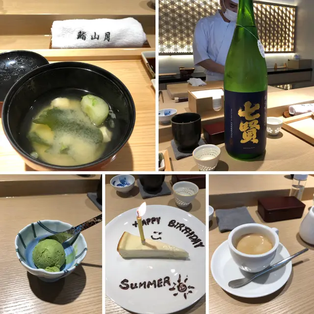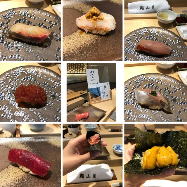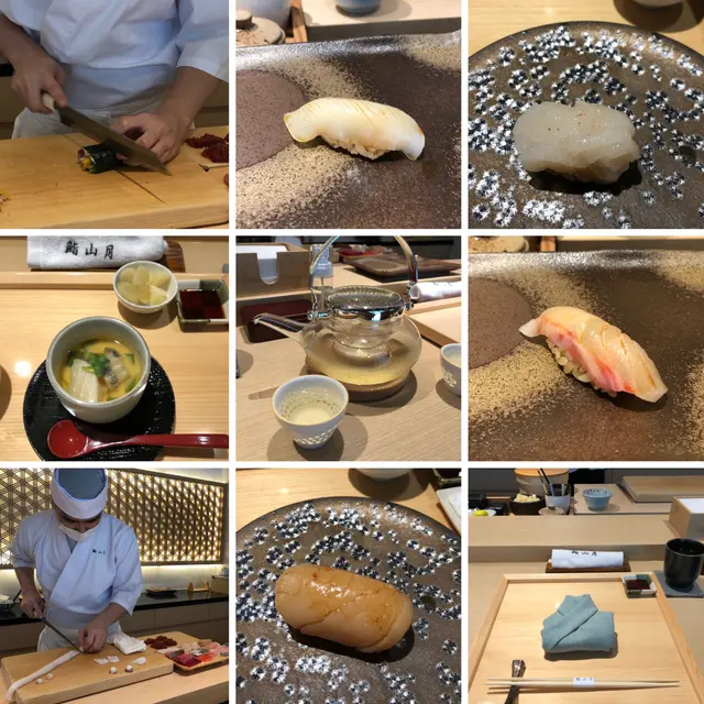 從未食過Omakase, 碰正呀女生日, 想試下, 但坊間有好多介紹, 價錢可以差別上$1000以上, 真係要小心選擇. 上網有看到介紹呢間"鮨山月" 開店五係好耐,  竟然都有好多人推介, 加上中午價錢分別有$680/880選擇, 第一次食, 都係選較便宜的餐試食下. 一去到, 侍應都好熱情招呼, 好貼心幫忙 (因為椅有點高,她會幫忙推椅及放手袋), 見到塊巾摺到件袍,好得意沖柸好香的綠茶給我們.  一坐下, 前面個寿司師傅會跟你先打招呼及問你有什麼食物敏感.  看環境, 好乾淨企理, 日式佈置, 背後有竹林圖案隱約透出來, 格局舒服, 大家都圍住師傅來坐. 平日中午, 都坐滿, 無計錯應該有16個位吧! 睇住師傅一面同人客溝通, 一面做食物, 係一種享受. 每一道, 師傅都會介紹是什麼魚生名字, 有些不是常見的名字, 師傅會介紹近似香港的什麼魚款, 加深我的認識, 所以非常清晰 第一道是鮑魚茶壺蒸, 鮑魚鮮甜爽口,蛋又滑又帶點甜味, 因為第一道菜, 是最肚餓, 所以特別好食 跟住係, 石湖標(花金古),白蝦, 漳泥烏賊,北海道慢煮凡立貝,深海池魚,牡丹蝦(面上有蝦糕同蝦子),慢燒金目鯛,山根池,池魚(面上有蔥),醬油漬赤身,備長炭黑目魚,北海道馬糞海膽, 吞拿魚魚蓉手卷 最後是抺茶雪糕 最有印象是有出世証明的大拖羅,有點食牛肉感覺,有油香又肉香.  好豐富魚蓉的手卷, 滿口油香. 牡丹蝦夠爽口,備長炭黑目魚有好香的煙燻味, 馬糞海膽夠鮮甜. 其實款款都有特色………d飯多數加了豉油, 有些又加了柚子鹽, 有些又加了檸檬皮, 令每件寿司都有不同的味道.  侍應都有介紹一些酒比我, 選左7賢(相片係大枝,用黎影相),因只有兩母女, 都會建議我地要枝細的去試, 入口順滑, 有米香, 不錯,酒柸好靚好精緻 因為呀女正日生日, book位時提出, 點知到最後, 侍應俸出了一件cheese cake,  一面唱生日歌, 一面拎出來, 唱完全場拍手祝賀, 感覺好溫馨, 呀女都好驚喜 是一次非常良好體驗…查看更多