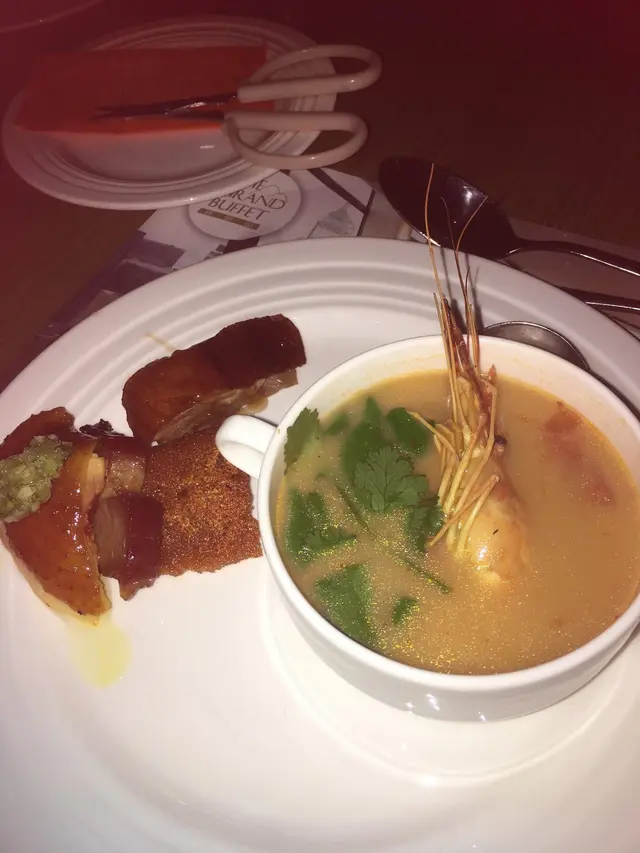 多年前在澳門食過, 個條食物架長到驚為天人, 款式多到計都計五曬, 食物質素都不錯, 不過太多國內同胞搶食, 所以感覺麻麻地. 知道他們在香港開業, 一直都訂五到柗, 真的要凡犠牲一下, 選星期一才能BOOK到柗…….在旋轉餐廳, 坐電梯都坐到暈, 走來走去, 終於都到左. 食物帶跟澳門大大不同, 他是分開一個個房間放食物, 還有下層,正常食物架. 略略睇款式無澳門咁多, 但我認為食物質素更重要.環境一留, 對住維港食, 更享受首先攻海鮮, 有麵包蟹,蟹腳,超大帶子, 龍蝦,翡翠螺, 大頭蝦………無食到麵包蟹,怕太多糕食漏左. 龍蝦肉爽甜, 龍蝦柑好大隻, 啖啖肉. 帶子鮮甜, 蟹腳鮮甜,大隻,多肉, 不會死實咸, 大頭蝦好多膏, 好鮮甜,肉又爽.煎鵝肝,燒牛肉,燒青魚……. 鵝肝好厚好大件, 五會煎完無睇頭, 加了多少一齊食….好juice,好甘白. 牛肉今天無和牛, 但燒出來都好野味, 燒青魚也不錯, 外脆. 燒味,再加冬陰公湯- 有油雞,燒鵝,乳豬,义燒, 留肚, 每件都試了一件, 好野味, 好好食,怪不得openrice好多人贊, 好出色. 冬陰公湯,好香蝦味, 酸味同辣味都好夠, 加上好多泰式香料, 好好飲.刺身- 有成8-9款, 只試了嬰花蝦,帶子,拖羅及油甘魚, 新解不在話, 仲要食到好鮮甜,多汁, 不會死乾. 尤其嬰花蝦, 超鮮甜, 後悔只食了一隻……….巴拿馬火腿及香草三文魚- 巴拿馬火腿好咁香, 油份充足, 不過有根,食到尾要肚出來. 香草三文魚奄左成件事五同曬, 軟滑,甘香.喇沙湯麵-用好多蝦頭做的湯,好香, 花生味夠濃, 加了豆卜吸湯汁,超正鮑魚花膠蚊冬菇- 蚊得好唸好入味, 原隻小鮑魚, size係細d, 但都是乾鮑貨式, 夠矜貴甜品-今天是榴槤主題, 所以好多甜品都是榴槤, 有雪糕, 燉蛋,泡芵,燸米磁, 撻,都係榴槤做, 不是榴槤精, 係超多榴槤肉做, 我地榴槤迷真係超滿足.還有好多食物, 但因食量有限, 所以要等下一次再到才能試了……..大致上食物質素屬於上上…查看更多