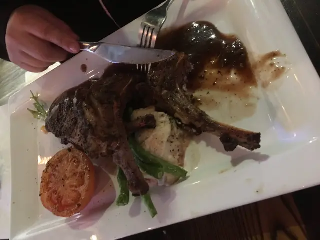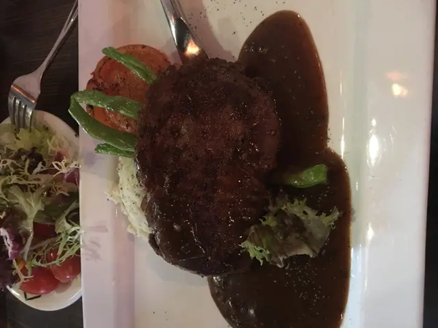 是一間酒吧型式, 中午午餐格調不錯, 暗暗地餐湯及沙律巴自助羊架-有成3件, 份量好多, 食落好幼嫩, 帶一點so味, 但可以接受:)紐西蘭肉眼扖,- 要求5成熟, 但來到是7成熟, 有點失望, 食落肉味濃, 黑椒汁偏咸.餐湯是薯茸湯,有點稀, 但味道尚可以沙律巴有點簡單, 因自助總算合格.價錢幾化算, 算合格.…查看更多