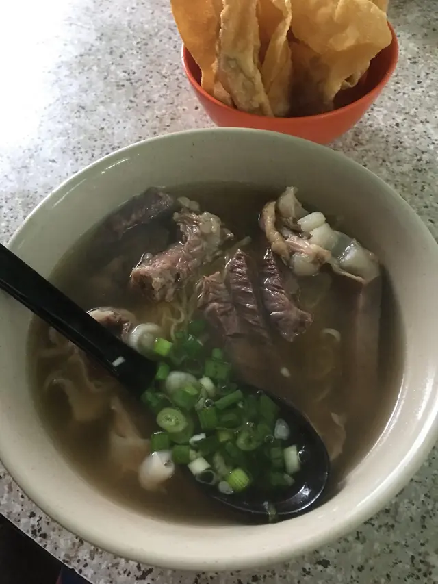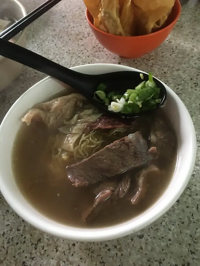 由元朗老遠一大早黎到, 等佢開輔, 一去到枱椅已經放好, 就係d湯未得, 比我地可以住低等. 之後越來越多人,怕叫五到心頭好, 唸住叫定先, 有個年青人話五駛急, 會有人黎落單, 點知落單時, 佢真係跟先後次序下單, 太公平了.規矩幾多架, 一人只能叫一碗限量板(即係牛沙瓜, 牛脆骨及爽腩, 牛脆骨又因份量少, 又一定要雙拼, 雙拼又五可以叫爽腩………..哈哈, 無他既, 目的係希望盡量多一些客人試到,太有性格, 我like 我地剛好三個人, 又係第一張柗, 所以可以叫齊三款限量板, 一人一碗, 所以到左我地都係share試.牛沙瓜-食落好滑, 質感似豬肚, 又爽又滑, 好入味牛脆骨-d骨好唸, 好入味.細個食過係較硬較脆的爽腩- 係比較瘦既牛腩, 但火喉剛好, 食落真的好爽口, 五會因為瘦而un湯底看上去好清, 但飲落味道好濃牛骨味, 好香牛味.麵底及粉底就一般當天係炸鯪魚球, 所以叫左炸云吞, 一般, 肉只有一點點,…查看更多