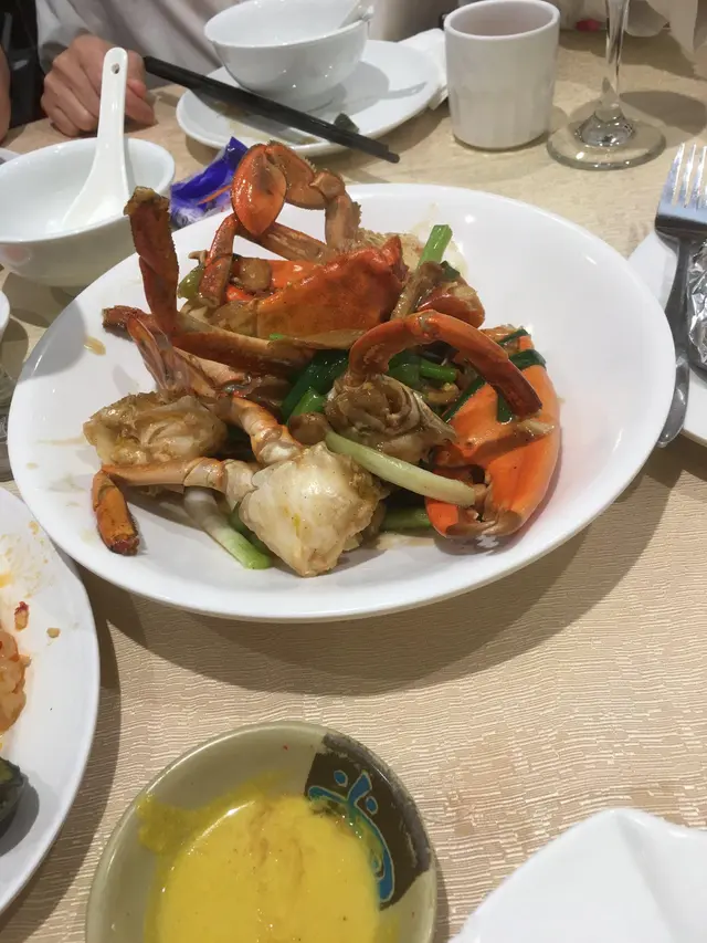 呢間店坐滿客人, walkin係無辨法有位的, 有一個肥少少的侍應招呼超到位, 今晚食得好開心.燒鵝皮又薄又脆, 有炭香, 肉質有咬口蒜茸蒸聖子聖子好大隻, 加好多粉絲同蒜茸一齊蒸, 再加豉熟油, 又食到聖子清甜又食到蒜茸的濃香味姜蔥炒蟹是一隻大肉蟹, 用姜蔥炒, 好香好野味什菇浸菜清甜:)酴酒焗蠔是美國蠔, 肉好大隻, 酒香味濃, 剛剛熟, 不會老豉汁炒蜆蜆好大隻, 豉汁味又濃, 超正蛋散-雖然是送的, 食落鬆化, 一D都五會求其…查看更多