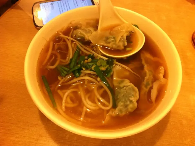 跟朋友坐在靠牆的一桌,茶未到,冷氣糟滴的水已先招呼了我們。改往外面坐後,朋友想吃煎墨魚餅,就點了招牌的黑豉油王撈粗麵。麵煮開了後醬油卻沒拌好以至顏色不均勻,刀功不注意以令蔥花大小不一:這種水準自己在家裡也做得到。墨魚餅有嚼勁,配合酸甜醬算是挽回一點分數。二十來塊,不想做飯的假日中午,還算是可以。…查看更多