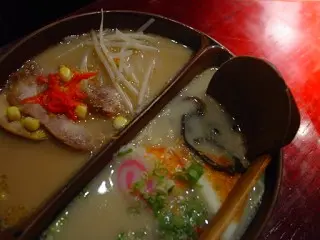 「三心兩麵」把碗一分為二,可以一次嘗兩種口味本來是不錯的點子。豬骨湯底叉燒煮太老而且瘦肉太多,沒有日式叉燒追求那種入口即化的感覺;一另魚湯底海鮮卻太鹹,而且蝦子不夠新鮮。魚板幼滑,算是比較出色。但噱頭始終是噱頭,一碗兩吃,碗中間的木片總是限制了空間,吃起來筷子用不爽。…查看更多
