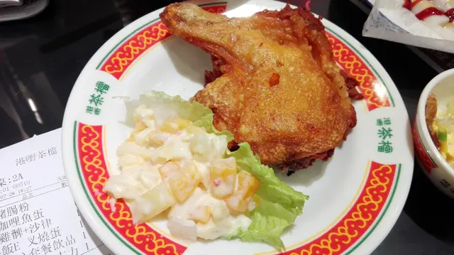 沙律個汁好吃, 阿髀又掂, 回味再三, 每星期都要encore 一次.價錢方面: 價錢適中, 這客不是茶餐, 散叫$30元, 飲品十零廿蚊杯, 不叫的話...可叫她們給杯水都無托手踭.環境方面: 裝修頗漂亮所以入座後很多人'左影右影' 都見怪不怪了 :) 喜歡坐卡位的排隊時請說明, 座位不多, 預了要等因長期有條隊在門外. (龍城茶記要易揾位當然是地茂館, 店大位多. 不介意等位的茶檔是另一好選擇!)服務方面: 店員頗忙因她們不算很專業所以有"少少甩漏"少意思啦, 最緊要是態度良好搭夠: 我給4分. 亦因為她們的'不專業', 大家才不會喝到'手指水', 不會食物未上..先請大家吃"口面". 這類店員"不專門"的茶記, 地下才會很清潔, 不會一地牙簽或垃圾. 要水有水、要碗仔有碗仔, 店員笑笑口間中或打個招呼, 很好! 我很喜歡這種街坊小店的氣氛! 有緣的話, 還會由