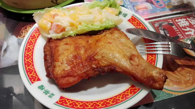 很久沒回來了, 上文提及上星期和 丈公 去某小店吃飯, 他又一早"做定功課"...說上了食網見到這樣好吃/那樣很多人介紹...如此這般~ 所以食網的生存對於他們會上網的長者是有意義的. 為了減少這類長者'中伏', 我決定有時間多寫, '溝淡' 那些不中肯的文章也算做善事吧! Chadon, 開張至今早、午、下午茶、晚餐合共幫趁了上百次! 因為好似砌模型般看著它由零到成型...有情意結吧...! 而最重要是它的食物水準穩定才留到食客的腳步! 當然, 有些地方有進步空間, 但一定不會是"喊面"! 入來OR一看後我決定...喜歡的, 要守護, 懶不得! 又要抽點時間寫番一篇半篇! 今天要寫的是炸雞髀沙律, 吃了十幾次, 每次都很滿意, 人家隨手給一個喊面我唯有入來給它一個笑面 中 和 它!其實我根本不想寫, 因無墨水支筆唔掂, 而又其實...識食的唔該睇睇張相, 一睇都知這份雞髀沙律做得很不錯! 那還寫什麼? 但我只是'等級4'要被批核才可出文, 這地盤要詳細形容食物才可出post, 既然在人家的地盤就跟番遊戲規則!(這碟是7月28號影的)(這碟是8月21號影的)(這碟是9月8號影的)食物方面: 炸髀上枱~ 香噴噴叫人食慾大增! 金黃色...靚仔到呢!!!! (仲影咩相, 食啦!) 雞皮脆卜卜, 每次來吃, 一咬或一刀切都是脆到'卡-卡-聲', 洒了淮鹽的皮吃到 'lam-lam-脷'.
