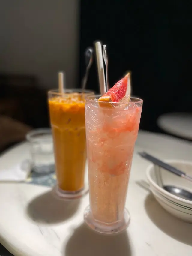 泰奶同西柚梳打,泰奶個人口味覺得淡咗少少,西柚梳打酸酸甜甜,飲落有果肉,不錯不錯