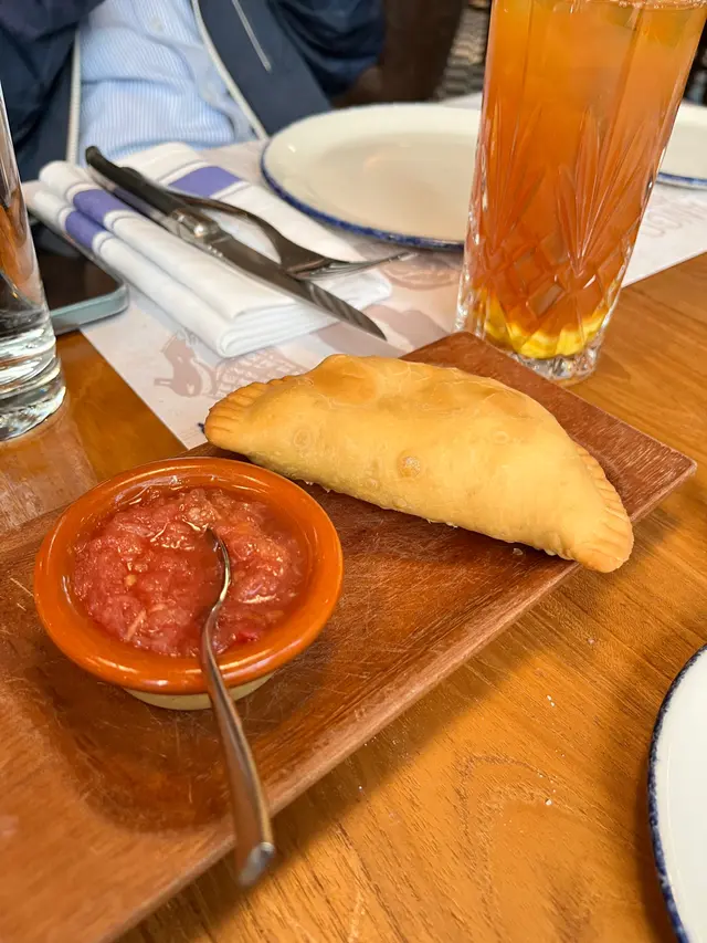 Lunch同事帶我黎食好西😁Ceviche de Salmon呢個三文魚前菜,食落有少少酸酸地,好開胃Empanada Jamón餡餅外皮香脆,入面有火腿同芝士,加埋蕃茄醬食不錯👍Parmentier Confit Duck Leg鴨腿肉質嫩滑,薯蓉食落有啲甜甜地Milanesa Napolitana炸牛扒食落就比較普通,因為炸過所以牛扒會係全熟,相對地比較遜色。黎呢到都係要食鐵板上既牛扒最好👍👍👍牛味濃郁、肉質嫩滑、仲有好多款唔同嘅醬汁俾你揀,梗有一款啱你口味😆😆Flan de Chocolate睇落似蛋糕,但其實佢係布甸黎,有濃濃朱古力味,不錯!…查看更多