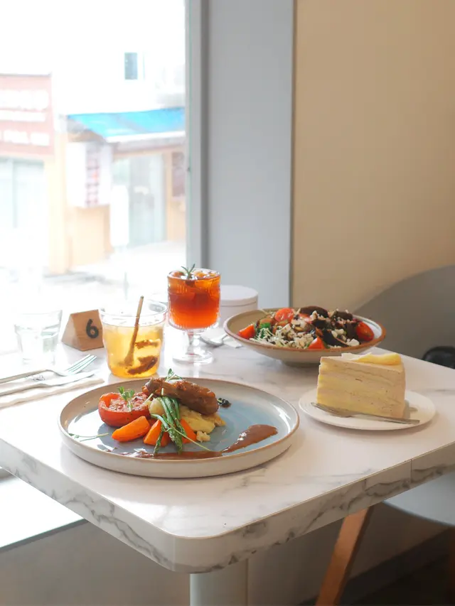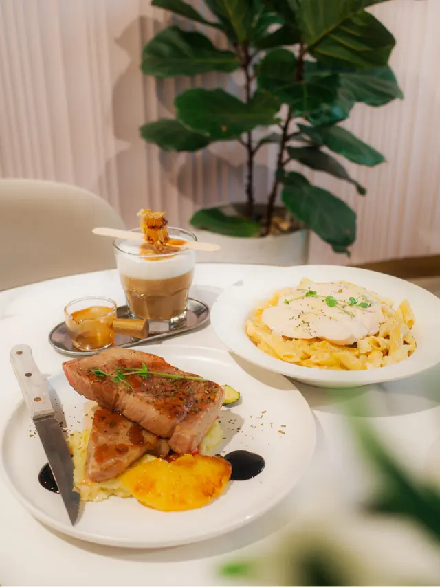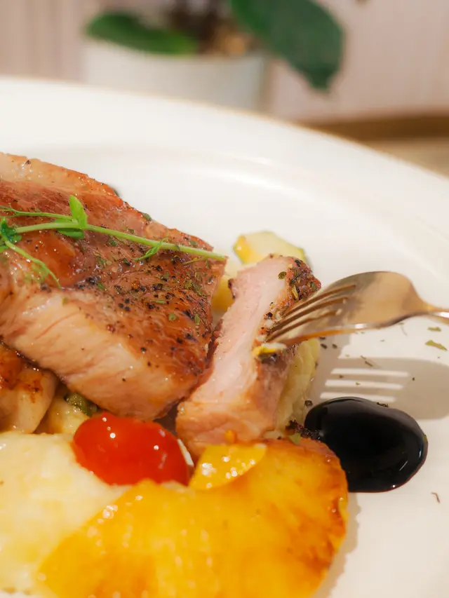 【#啟德 |打卡之選❣️ 花果系吸睛美食✨ 享受甜蜜時光💗】推薦程度:●●●◐○抵食程度:●●●◐○———唔講唔知原來雙子匯超多餐廳❣️今次上到高層14樓見到有間落地大玻璃望住靚view、超打卡able嘅cafe✨價錢唔算相宜,但勝在風景、採光同舒適度都好OK🩵行SOGO行到攰都可以上去take a break🫶🏻🍎 蘋果木煙燻法式鵝肝 • 配炙燒焦糖香蕉|$168勁吸睛、好打卡嘅前菜✨店員都會好貼心詢問要唔要影相先打開食物罩🙌🏻整份鵝肝、窩夫都充斥住煙燻嘅氛香!令人食旨大動👅鵝肝唔重油膩感,唔係入口即融嗰種所以作為前菜唔會太飽滯影響後續主菜🙂↕️夾埋窩夫同焦糖香蕉整體口味偏甜介紹俾螞蟻族做開胃小菜✨🍴 香煎北海道帶子 • 少女心紅菜頭燴飯|$158同樣擺盤好靚、賣相好吸引💗帶子厚身大隻、口感稍稍彈牙、份量都很可以🆗Risotto用上紅菜頭做醬料同口味嘅基礎比起一般用cream嘅都清新不膩🌱唔太飽滯,啱晒我呢啲港女🤪🐷 巴黎豬鞍扒 • 配燒菠蘿雜菜|$238大大塊嘅豬鞍扒成吋厚!!厚得嚟肉質保持到唔乾煮得夠稔易入口🙂↕️而菠蘿醬汁就平衡返肉肉嘅油脂感甜甜酸酸好refreshing又解膩✨同樣介紹俾螞蟻族🐜🧊 藍蝶花金桔梳打|$48飲開走甜嘅我都俾上香港人最高評價:唔係好甜😌✨雖然對打卡嘅藍蝶花漸層效果唔意外但睇住美美嘅藍色漸變至黃色攪拌之後嘅混色同樣fancy就算呢算視覺效果唔係咩新鮮事但總有種令人心境和平同帶點生活儀式感嘅小確幸🩵…查看更多