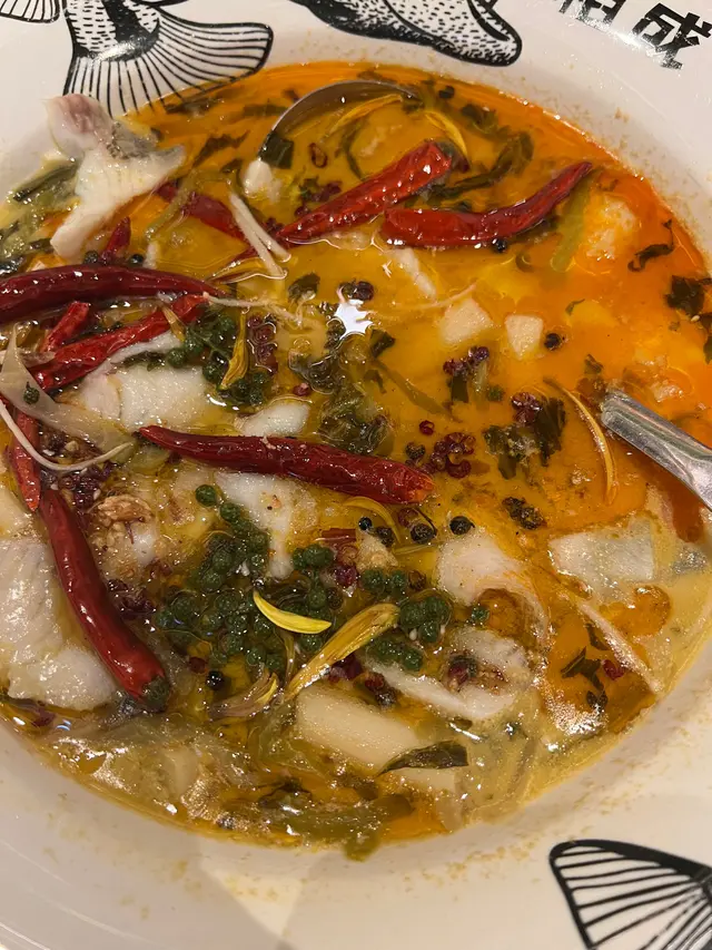 朋友問我食唔食辣,然後佢帶咗我去呢間餐廳,九龍站上蓋既圓方商場入面,book左7點,吾算爆場,8成滿,叫左一個2人餐,吾洗煩😂樣樣都有得試。揀左酸菜桂花魚,首先黎左個雞湯,好有雞味👍🏻配菜既醉雞好滑😋其他都系好食,但未到驚艶,值得俾個👍🏻…查看更多