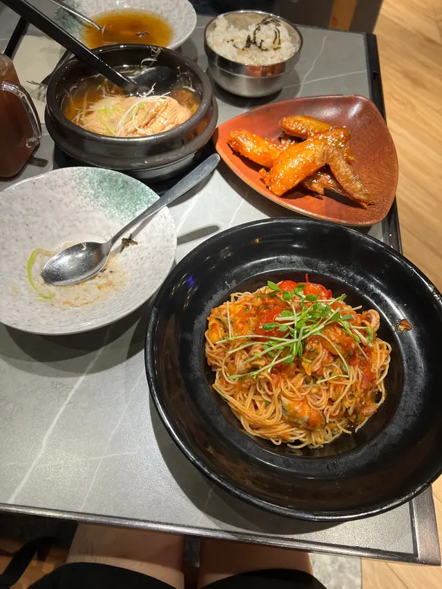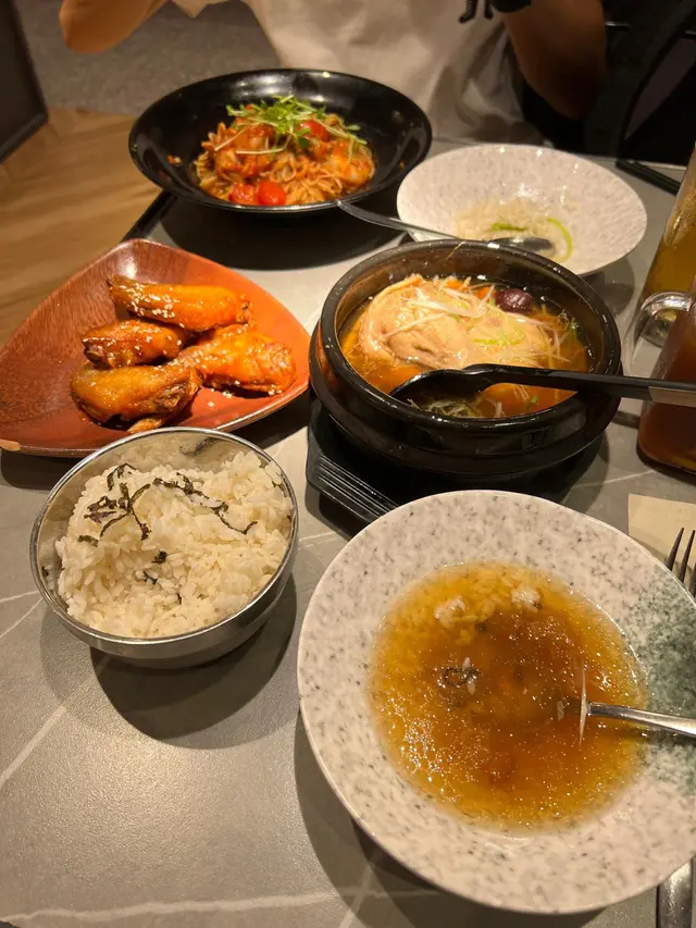 我聽講依間餐廳幾特別會由機械人過嚟送餐,所以約咗個朋友過嚟食,咁啱佢又有啲興趣可能佢都想試吓啲新嘢。佢就叫咗個薏米人蔘燉雞湯($87)我M左幾啖嚟食,完全顛覆咗我對依味菜嘅感覺,往往叫人蔘燉雞湯都會落好多味精,但係依個真材實料味精感覺唔太重。至於我自己就叫咗意式海鮮茄蓉意大利麵($72),調味方面都好Fresh ,啲意大利麵條口感Al dente 再加埋啲蕃茄肉俾人一種煥然一新嘅感覺。至於啲海鮮方面亦都唔係10分冰鮮的感覺,感覺誠意滿滿🥰兩個人食仲有叫咗啲小食,柚子雞翼($32)首先佢唔會炸到過火,我再加埋剛剛好的柚子醬,所以個感覺一啲都唔膩。嘢飲方面我哋叫咗好多,我叫咗兩支啤酒(asahi)同埋一杯藍荳花檸檬茶。顏色同味道都唔錯仲有淡淡茶香花香👍🏻…查看更多