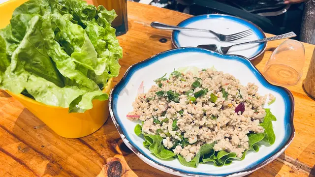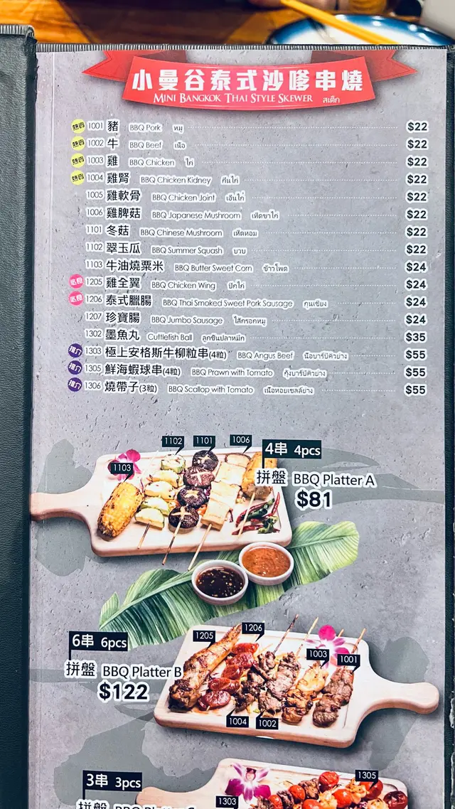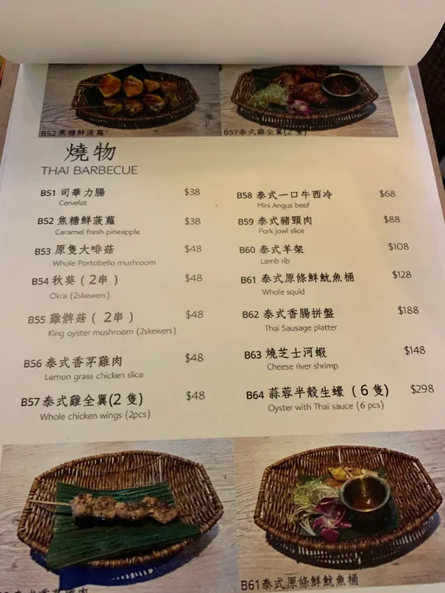 鳳爪分量有滴少,但係味道係可以的。生菜肉包正常水準,碎肉都比較多汁,味道可以。距地個燒烤其實好正!本身肉燒得五柴,搭配距地個醬,簡直係我食過最好食的泰式燒烤。春卷麵粉稍微多左少少,味道係可以的。呢個飛天通菜勁辣,送飯一流,不過五知係五係季節問題,我鐘意菜葉多滴。